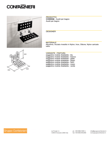 PRODOTTO CO000Q6 - Ausili per bagno Ausili per bagno DESIGNER MATERIALE Alluminio, Acciaio rivestito in Nylon, Inox, Ottone, Nylon caricato vetro VARIANTE - FINITURA seggiolino mobile ribaltabile - blu seggiolino mobile ribaltabile - bianco seggiolino mobile ribaltabile - giallo seggiolino mobile ribaltabile - grigio seggiolino mobile ribaltabile - nero seggiolino mobile ribaltabile - rosso seggiolino mobile ribaltabile - verde