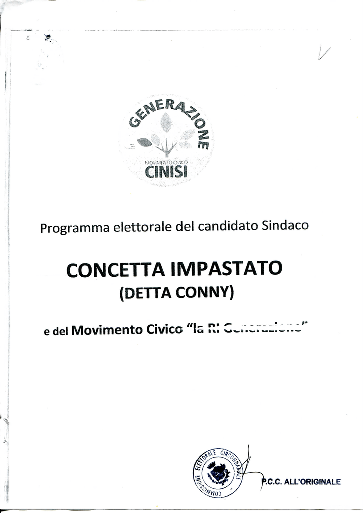 il programma politico del candidato sindaco CONCETTA IMPASTATO fdetta CONNY) e delia lista