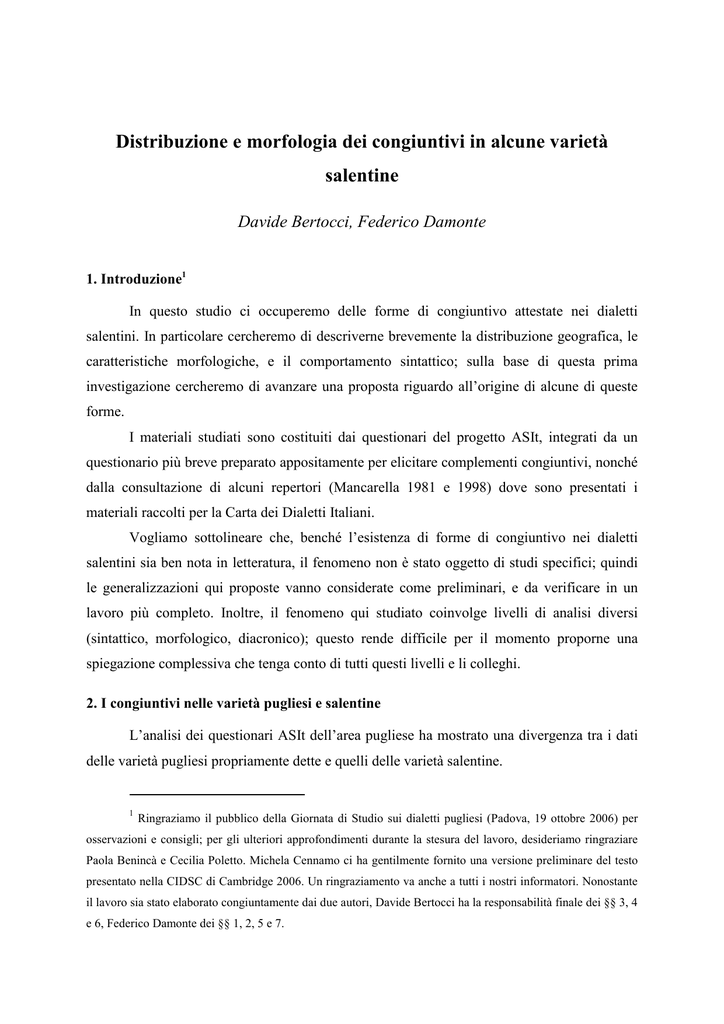 Distribuzione e morfologia dei congiuntivi in alcune varietà salentine