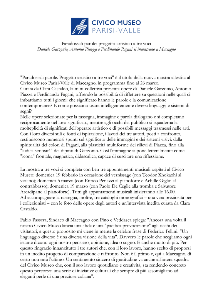 Comunicato stampa - Museo Parisi