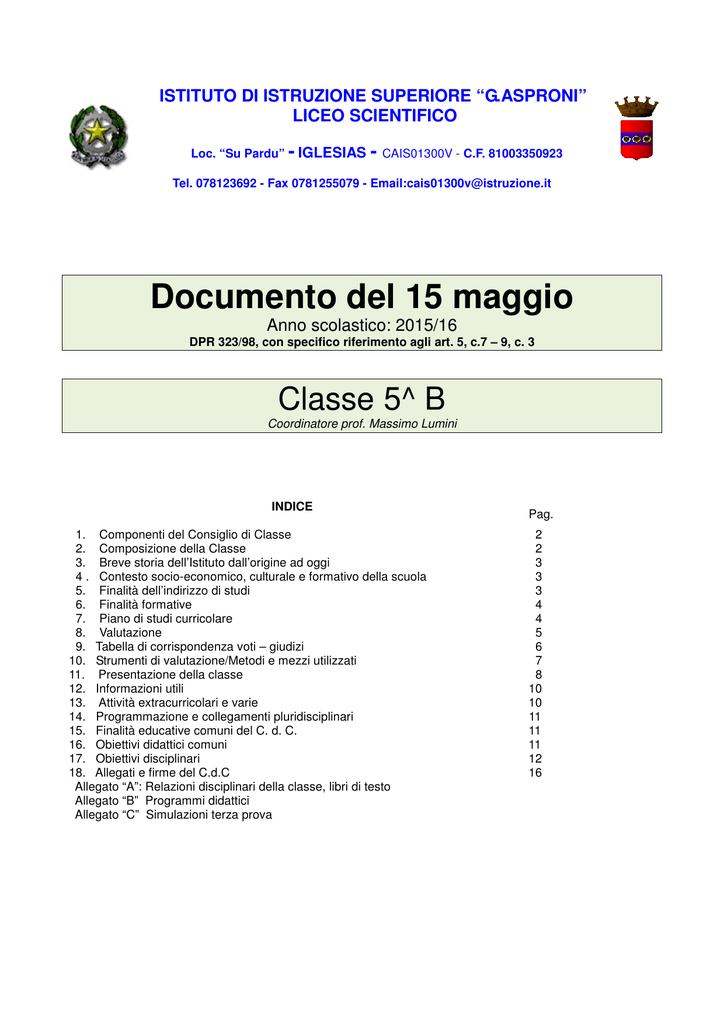 Documento del 15 maggio - Liceo scientifico G. Asproni