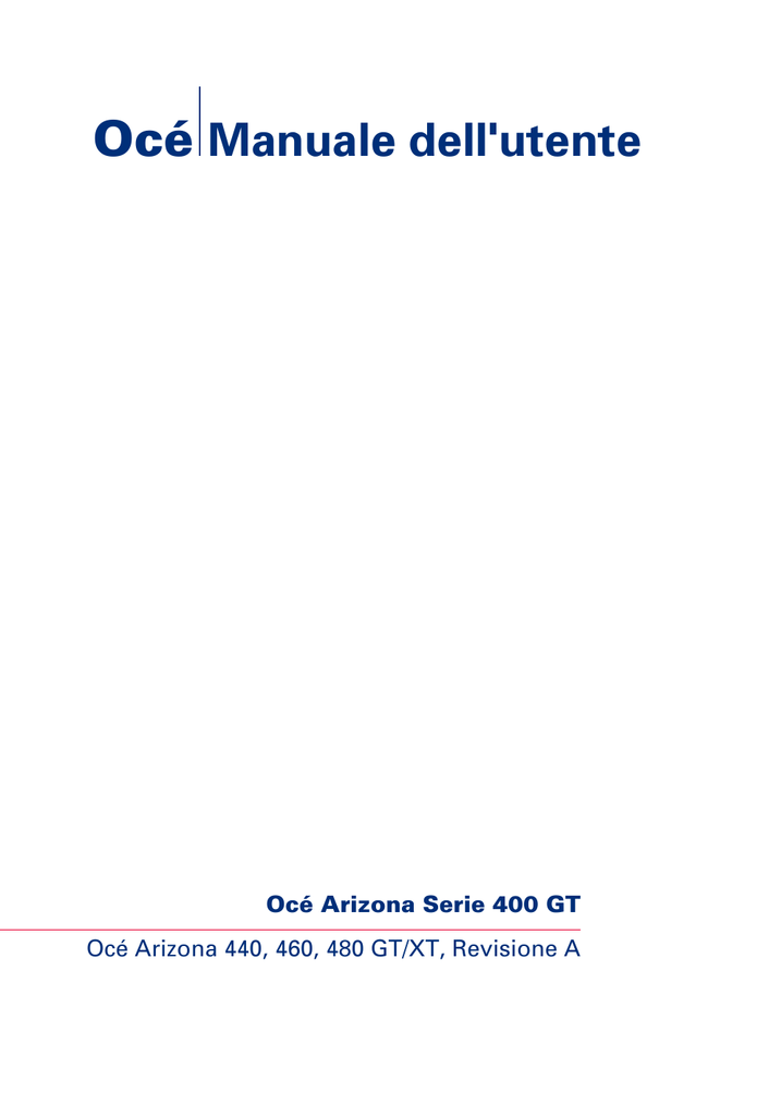 Océ Arizona Serie 400 GT Manuale dell`utente V. 1, Ed. n