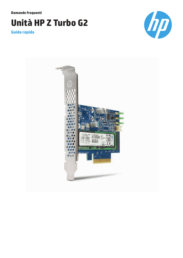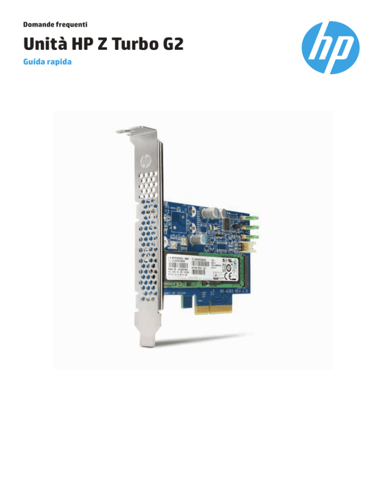 Domande frequenti Unità HP Z Turbo G2 Guida rapida FAQ | Unità HP Z Turbo G2 Prestazioni e implementazione del prodotto Cos'è la SSD dell'unità HP Z Turbo? La SSD PCIe dell'unità HP Z Turbo è il nome attribuito ad un'unità SDD M.2 PCIe. La scheda M.2 PCIe utilizzata nell'unità Z Turbo richiede uno slot PCIe x4 per garantire prestazioni elevate. Questi nuovi componenti di storage sono compatibili con molte workstation HP Z. Per questioni di compatibilità fare riferimento alla nostre schede tecniche. Quali sono le novità della SSD PCIe HP Z Turbo G2? Nella nuova SSD PCIe HP Z Turbo G2 è integrata la tecnologia SSD che utilizza PCIe Gen3 x4 per un maggiore larghezza e raddoppia le prestazioni sequenziali. La SSD impiega inoltre la tecnologia di controller NVMe che garantisce prestazioni di lettura casuale 3 volte superiori. Le prestazioni di una SSD PCIe possono essere paragonate a quelle di una SSD SATA? La nuova SSD PCle HP Z Turbo G2 supera di gran lunga le prestazioni di una SSD SATA standard. La larghezza di banda SATA di tutte le SSD è limitata a 6 GB/s. Le prestazioni sequenziali della nuova SSD PCle HP Z Turbo G2 sono 4 volte più veloci rispetto alle prestazioni della SSD SATA. Unità HP Z Turbo G2 Unità HP Z Turbo SSD SATA Unità disco rigido SATA 7200 Lettura sequenziale 2150 MB/s 1.170 MB/s 550 MB/s 150 MB/s Scrittura sequenziale 1550 MB/s 950 MB/s 500 MB/s 150 MB/s Lettura casuale IOPS da 300K IOPS da 122K IOPS da 100K IOPS da 0,46K Prestazioni lettura/scrittura sequenziali (MB/s) 2500 2000 1500 1000 500 0 Lettura sequenziale Disco rigido SATA da 7200 SSD SATA Scrittura sequenziale Unità HP Z Turbo Unità HP Z Turbo G2 (NVMe) Prestazioni lettura/scrittura casuali (IOPS) 350000 300000 250000 200000 150000 100000 50000 0 Lettura casuale Disco rigido SATA da 7200 2 SSD SATA Scrittura casuale Unità HP Z Turbo Unità HP Z Turbo G2 (NVMe) FAQ | Unità HP Z Turbo G2 Esistono significative differenze tra l'utilizzo di una SSD M.2 PCIe e una SSD SATA? Le poche differenze riguardano i requisiti driver di storage e la connettività RAID. È necessario utilizzare un driver di storage specifico NVMe. L'unità HP Z Turbo inoltre non utilizza controller di storage onboard né saranno necessari in alcuna utility ROM opzionale del controller. Non essendo quindi utilizzati controller di storage onboard nell'unità HP Z Turbo, i driver di controller non saranno richiesti. La nuova unità HP Z Turbo G2 richiede l'utilizzo di un driver specifico? Sì. Per un corretto rilevamento e funzionamento, i dispositivi NVMe richiedono un driver apposito. Microsoft Windows 8 e le versioni successive forniscono un driver inbox NVMe. Per Windows 7, Microsoft ha pubblicato un hotfix con un driver NVMe. Nell'articolo 2990941 della Microsoft Knowledge Base viene descritta la funzionalità del driver NVMe di Windows 7 e offre la possibilità di scaricare l'hotfix. Il nuovo driver NVMe non supporterà l'unità HP Z Turbo originale. Per Linux®, il driver NVMe è stato integrato nella versione 3.3 del kernel Linux. Più avanti sono elencati i sistemi operativi supportati. Quali sono le capacità della nuova unità HP Z Turbo G2? Sono disponibili due modelli della nuova SSD PCIe HP Z Turbo G2, uno a 256 GB1 e uno a 512 GB1. Crediamo di poter offrire a breve dispositivi con capacità superiori non appena disponibili. Qual è la resistenza in TBW (terabyte scritti) dell'unità HP Z Turbo G2? La memoria NAND MLC utilizzata nell'unità HP Z Turbo registra 3000 cicli di programmazione e cancellazione. Tale resistenza è paragonabile ad alcune SDD SATA supportate nelle workstation HP Z. La versione a 256 GB1 registra 146 TB1 TBW (80 GB/giorno per 5 anni) mentre la versione a 512 GB1 292 TB1 TBW (160 GB/giorno per 5 anni). Quali piattaforme workstation HP Z supporteranno l'unità HP Z Turbo G2? L'unità HP Z Turbo G2 è supporta sulle workstation Z440, Z640 e Z840. Le piattaforme potranno supportare sia le unità HP Z Turbo G2 che SATA/SAS? Sì. Sono supportati molti altri componenti e controller di storage che permettono di utilizzare varie soluzioni di storage. La maggior parte di tali combinazioni è supportata dal punto di vista tecnico. Tuttavia non tutte queste configurazioni e le opzioni di supporto RAID sono soluzioni di fabbrica. È possibile utilizzare l'unità HP Z Turbo G2 insieme ai controller SAS aggiuntivi? Dal punto di vista tecnico è possibile supportare altri controller SAS insieme all'unità HP Z Turbo. Tuttavia tali configurazioni potrebbero non ricevere supporto di fabbrica. L'unità HP Z Turbo dispone di Option ROM (OROM) per l'avvio? Gli attuali moduli M.2 supportati non dispongono di OROM. Se tale utilità fosse integrata, il BIOS della workstation HP Z disattiverebbe l'Option ROM sul modulo M.2 e utilizzerebbe il codice integrato nel BIOS per supportare l'avvio dall'unità HP Z Turbo. Cosa succede se l'Option ROM del mio controller di storage aggiuntivo impedisce l'avvio dall'unità HP Z Turbo? In caso di conflitti tra OROM esterno e unità HP Z Turbo rilevati dal BIOS, disattivare l'Option ROM relativo allo slot in cui risiede il controller di storage aggiuntivo. È possibile utilizzare questa unità come dispositivo di avvio? Non ci sono limiti di utilizzo dell'unità HP Z Turbo come unico dispositivo di avvio. Non è invece possibile utilizzare l'unità HP Z Turbo G2 come volume di avvio se presente in un array RAID. È possibile definire l'avvio da RAID di partizioni del sistema operativo basandosi sui limiti delle capacità RAID SW supportate dal sistema operativo. Il RAIDing della partizione di avvio non è invece supportato. È possibile aggiungere più unità al sistema? È possibile combinare le unità in un RAID? Sì. Dal punto di vista tecnico è necessario che ciascun dispositivo possa essere inserito in uno slot PCIe che supporta Gen3 x4. Il numero massimo di unità supportate dipende dagli slot PCIe disponibili. Per il supporto RAID, le unità possono utilizzare il RAID 
