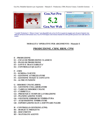 Gea.Net, Modalità Operative per Argomento – Manuale E : Produzione, CRM, Risorse Umane, Controllo Gestione