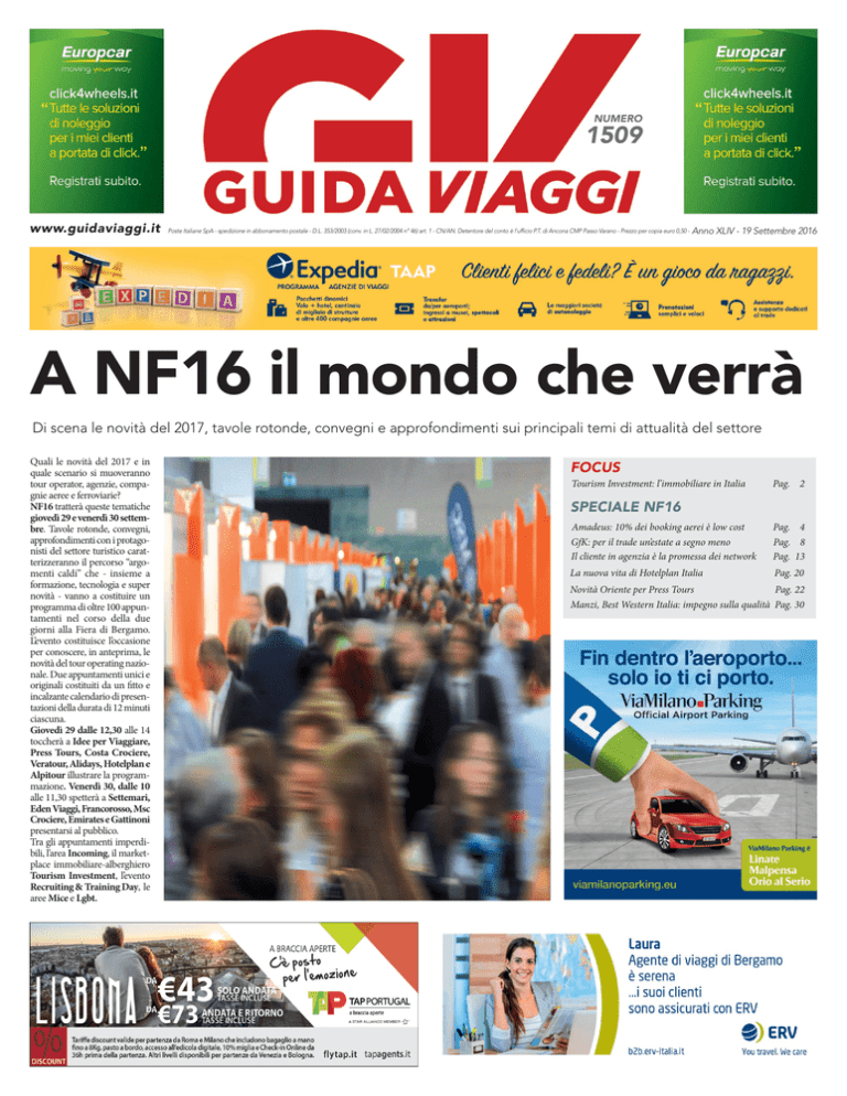 NUMERO 1509 www.guidaviaggi.it Poste Italiane SpA - spedizione in abbonamento postale - D.L. 353/2003 (conv. in L. 27/02/2004 n° 46) art. 1 - CN/AN. Detentore del conto è l’ufficio P.T. di Ancona CMP Passo Varano - Prezzo per copia euro 0,50 - Anno XLIV - 19 Settembre 2016 A NF16 il mondo che verrà Di scena le novità del 2017, tavole rotonde, convegni e approfondimenti sui principali temi di attualità del settore Quali le novità del 2017 e in quale scenario si muoveranno tour operator, agenzie, compagnie aeree e ferroviarie? NF16 tratterà queste tematiche giovedì 29 e venerdì 30 settembre. Tavole rotonde, convegni, approfondimenti con i protagonisti del settore turistico caratterizzeranno il percorso “argomenti caldi” che - insieme a formazione, tecnologia e super novità - vanno a costituire un programma di oltre 100 appuntamenti nel corso della due giorni alla Fiera di Bergamo. L’evento costituisce l’occasione per conoscere, in anteprima, le novità del tour operating nazionale. Due appuntamenti unici e originali costituiti da un fitto e incalzante calendario di presentazioni della durata di 12 minuti ciascuna. Giovedì 29 dalle 12,30 alle 14 toccherà a Idee per Viaggiare, Press Tours, Costa Crociere, Veratour, Alidays, Hotelplan e Alpitour illustrare la programmazione. Venerdì 30, dalle 10 alle 11,30 spetterà a Settemari, Eden Viaggi, Francorosso, Msc Crociere, Emirates e Gattinoni presentarsi al pubblico. Tra gli appuntamenti imperdibili, l’area Incoming, il marketplace immobiliare-alberghiero Tourism Investment, l’evento Recruiting & Training Day, le aree Mice e Lgbt. FOCUS Tourism Investment: l’immobiliare in Italia Pag. 2 SPECIALE NF16 Amadeus: 10% dei booking aerei è low cost Pag. 4 GfK: per il trade un’estate a segno meno Il cliente in agenzia è la promessa dei network Pag. 8 Pag. 13 La nuova vita di Hotelplan Italia Pag. 20 Pag. 22 Novità Oriente per Press Tours Manzi, Best Western Italia: impegno sulla qualità Pag. 30 FOCUS NF16 2 19 Settembre 2016 - n° 1509 Immobiliare nel turismo: Italia e Sud Europa al centro della contesa I riflettori di Tourism Investment sugli investimenti “Ci aspettiamo per i prossimi anni una crescita significativa di investimenti alberghieri in Sud Europa, particolarmente in Portogallo, Spagna, Italia, Croazia e Grecia”. Sono le parole di un esperto del settore, Michael Widmann, managing partner di Pkf hotelexperts di Vienna. “Pkf hotelexperts, società leader nella consulenza alberghiera, quest’anno patrocina per la prima volta Tourism Investment – avverte Giorgio Bianchi, presidente R&D Hospitality -, il workshop dedicato all’hôtellerie in seno a NF Travel & Technology Event. Dibattiti e presentazioni costituiscono il focus della presenza di Pkf all’evento, che quest’anno dedica due intere giornate al settore alberghiero italiano”. “Spagna e Italia soprattutto sono contese dagli investitori internazionali – spiega Widmann – visto che le opportunità immobiliari in Nord Europa di- Rendering tourism investment ventano più scarse ed alcuni mercati come Russia, Turchia ed Egitto non sono considerati sicuri”. Altro evento di spicco nel corso di Tourism Investment è la presentazione in anteprima assoluta della ricerca “Italian Hotel Groups” dedicata ai gruppi alberghieri di Laura Dominici Giovanna Manzi italiani. Tra i momenti di dibattito, uno sguardo agli andamenti che hanno caratterizzato il mercato turistico immobiliare fino ad oggi e agli scenari del 2017, tra post Brexit, tour operator che diventano sempre più gestori alberghieri, fasi di accelera- zione e rallentamenti. Al recente Forum Ambrosetti è stato presentato un report sull’attrattività dell’Italia rispetto agli investimenti, che ha evidenziato un miglioramento della posizione dell’Italia, salita al 14esimo posto. “Mi sembra che la realtà dei fatti sia questa – dichiara Giovanna Manzi, a.d. Best Western Italia -. In diverse manifestazioni cui abbiamo preso parte abbiamo avvertito un crescente interesse per il nostro Paese. Guardando al 2017 e alle conseguenze della Brexit, credo sia fondamentale una valutazione sulle eventuali ripercussioni di questa scelta sulla sterlina, visto che a noi interessano i flussi incoming. La Brexit può favorire investimenti in Italia, credo vi sia anche un presupposto dal punto di vista politico perché accada”. Parlando di tendenze, Manzi cita “la sempre maggiore evidenza di aziende che si occupano di gestioni alberghiere pluribrand, un esempio è Hnh, società che preferiscono, giustamente penso, gestire alcune strutture di diversi marchi, senza pensare di sviluppare un marchio proprio, trovando profitto nella gestione, che hanno reso efficiente. Un fenomeno di successo negli Usa, che sta prendendo piede anche da noi, con realtà nazionali molto professionali. Se ce ne fossero di più credo che l’industria alberghiera in Italia sarebbe migliore dal punto di vista quantitativo ed anche industriale”. . Le voci dei player: fondi in arrivo “Le località del Belpaese stanno rappresentando, soprattutto nell’ultimo periodo, un bacino interessante di occasioni per gli investitori d’oltreoceano”. A dirlo è Giorgio Palmucci, presidente di Associazione Italiana Confindustria Alberghi , che così commenta: “Per mantenere alta l’attrattività del nostro settore, da oggi in poi, occorrerà adeguare il patrimonio immobiliare alle esigenze specifiche dell’investitore internazionale, che ha sviluppato sistemi di analisi in grado di evidenziare punti di forza e criticità volti Layout rinnovato per il marketplace Per dimostrare quanto il tema del design sia fondamentale nella buona riuscita di un progetto immobiliare-turistico, quest'anno l'archistar Simone Micheli rafforza la sua partnership con Tourism Investment. Al suo estro è stato affidato il compito di “reinventare” il layout dell’area dedicata al marketplace alberghiero. “Progettare l’allestimento è per