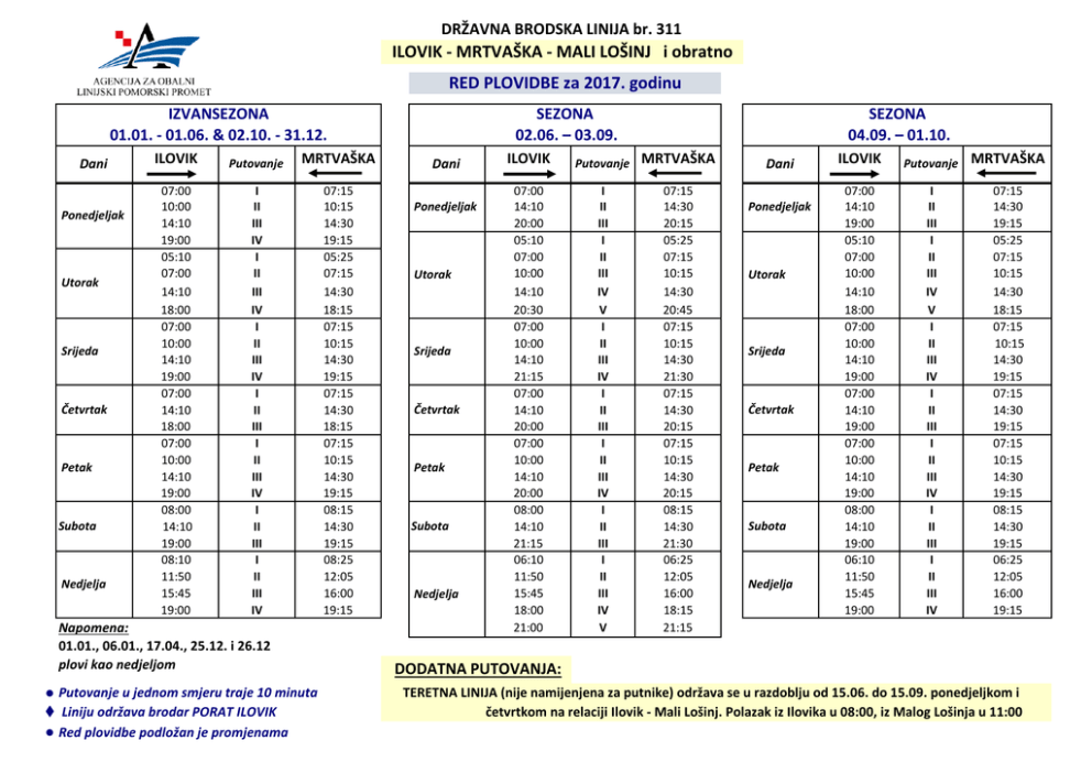 RED PLOVIDBE za 2017. godinu ILOVIK - MRTVAŠKA