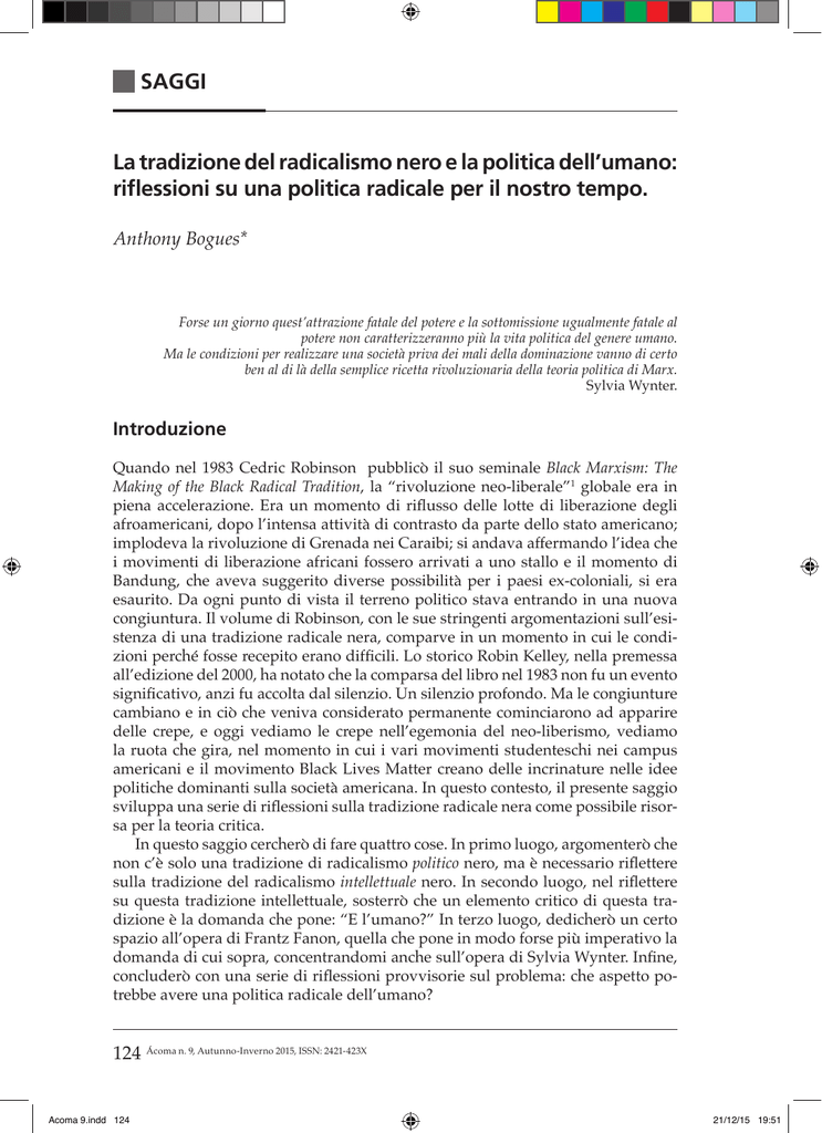 SAGGI La tradizione del radicalismo nero e la politica dell