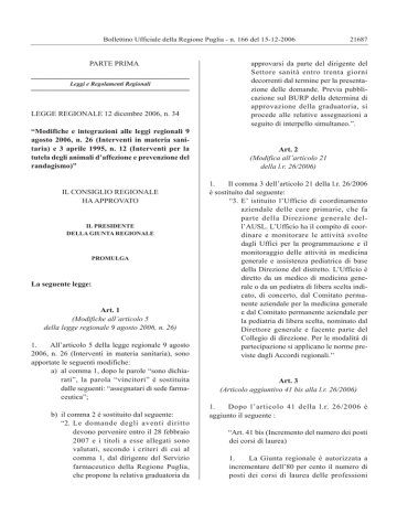 PARTE PRIMA LEGGE REGIONALE 12 dicembre 2006, n. 34