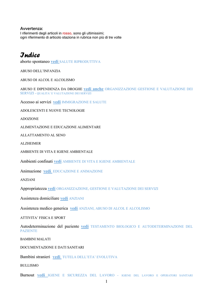 Assistenza medico generica vedi ANZIANI, ABUSO DI ALCOL E ALCOLISMO