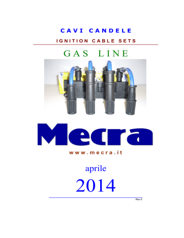 CAVI CANDELE IGNITION CABLE SETS GAS LINE www.mecra.it aprile 2014 Rev.0 ! "# 0 )" )" )" )" $ % & # * #. # #. #. # #1 #$ 2 + 3 & 1 * 1 1 1 * ' ( +# * +# ' +# / +# / ! ! ! ! ! ! ! ) ) ) ) ?1 ?1 ?1 ?1 ?1 ?1 ?1 ?1 #>0 4 #>0 4 #>0 4 #>0 4 5,2&67!8 5,2&67!8 ;, &<7 8 ;, &<7 8 ! ! ! ! ' ' ' ' 5 8 5 8 $5 8 5 , ! 5 8 $5 8 5 8 5 $5 - ! / -"# ,4 % )@; )@; )@; )@; )@; )@; )@; )@; ,4 % ,4 % ,4 % 4A 01 4 B 1 4A # $ 1+ #" B 1 / 4A # #" B 1 0 #" B 1 ,# 1#3 01 4 B 1 ,# 1#3 @0 01 4 B 1 C? / - 1 #" B 1 / -04 #"4 #" B 1 / ! ! ! 14#3+ # 4 3 14#3+ # # 4 3 809" 1$ 0: # 4 3 ; 4 = 0: # 4 3 + 3 + 3 + 3 3? 1 3? 1 3? 1 3? 1 ! ! )* $ ( ) , ! , / , / ) , ! ! ! ! ! ! ! ! ! ! , , , , , , , , ! ;, &<7 ! ! ! $ $ ! " # $%&' (((& ! ! ! ! 8 ' ! ! ! ! ! ! ! DD ,C 6 EE -04 #"4 40" B 1 / 4# 2 3? ,4 %>0 4 4# 2 3? 3? #" B 1 3? 3? 3? #" B 1 3? 01 4 B 1 03 01 4 B 1 03 #>0 4 03 * 03 * 01 4 B 1 @0 01 4 B 1 - < ,4 %#>0 4 ,# : / / ,# : /C / , 0: CC , 0: 6# / , 0: CCC ,4 %#>0 4 , 0: #$ 6013# 1 #>0 4 ,0:# 3 6 013 33 61 3:# 33 61 3:# 0 0: 61 3:# # #>0 4 ! $ ! ! ! ! ! ! ! ! -7 ,<8 $ ,<8 ;68 $ ;68 )C < $ < -7 *F $ *F $ *F C$ *F ,<8 $ ,<8 *F *F ) * , ! ! ! ! ! $ *F 8 ! ! ! ) * ! 9 ? & ' ! ) 1* 1* ?0 4 & ?0 4 & ' ' *+ # # 40?1# # 40?1# #! $ 2 60 : 3 # ! ! ! ! #4= C ! & :' #4= CC ! & :' #4= CC ! ) & :' , 1 ;# CC ? / ! ! ! ! ! ! ! ** ! " # $%&' ((($ # CC -0: F":#4 3 #>0 4 F":#4 3 ( >#1 &, ! ! ' ( + 4# CCC 1 3? 01 # ,4 % / 4# CCC # ,4 % / *:" CCC # 5 3+ C 5 3+ # 4 3 / 5 3+ *%"1 :: # 4 3 / +03 C$ 1 3? 01 & ' +03 C$ 1 3? 01 & ' + 3 - ?0: # ,4 % / 6B#3+ # + F , , $ , ,!; , $ , 5 5 ,! ,! , ! , , $ , $ , ! ! + $ #>0 4 ) / #>0 4 C 9 # #>0 4 C3?# C3?# C3?#+ C3?#+ #>0 #>0 #>0 #>0 4 44 4- ) ) 3 - ,C - ,C 3 ! " # $%&' (((. ! ! ! ! $ ! ' "# $ % $& ' ! ! ! "#$ % " ## $ ' " ## $ & & & $ ! "# $ % $& ( ! ! ! ) ()* + () -' () , , , + + ( . , . , , . . ) / / 0 0 , + * + + ( , ) * + , ( * + . # , * + + 12 + 12 * + ( * + , , , , & 3 & 3 & .- . *+, $ - '/ ' 4 5& - $ ! "# $ % $& .-' *+, .-' / ## .- . *+, 2 2 .. * 62 '* 6 6 ) 7 $ ! "# $ % $& .. ) * +8 ) .. * +8 .. '. '. * ) 62 62 9 +5:( 50 +8 .. . * ' ) +2 - $ ! ..' "# $ % $& * ) 5 ++ 15 * ( -/ ..'' * 0 0 0 1 ' - 5 ) 15 5 . 15 5 . 0 ; 1 5 15 '* < ) 2 + 2 + . $ ! 1 "# $ % $& ) = > - " ( ) ! 5 + 1' ? 4, 1' ' 1& 1' 1 ? ? & & 2 2 + + , , ) # , ) 5 ### ##- , ) 2 1 + + + && . 2 + . 1 $ ! "# $ % $& 1' 1' . ' ' , ) ### ### 9 % + 9% . &9% 1- ( 4 4 1- 1 . 5 & -4 ' &+' ( '% 6@ &+ . &+ .# 5 & ## 5 & 4 %.+5 5 & ### & 5+ 5+ . . . $ ! 1--' 1-- 1 "# $ % $& ( 4 &+ ( 4 & + 6 + ( & '* ) ) # 5 # 5 # # 1 '< .< # ' >( $ + + $ ! "# $ % $& 1.1' * 2 ## 11 ' 2 15 > $2 9 2 15 9 2 15 *, *, ' - < 6 '* '