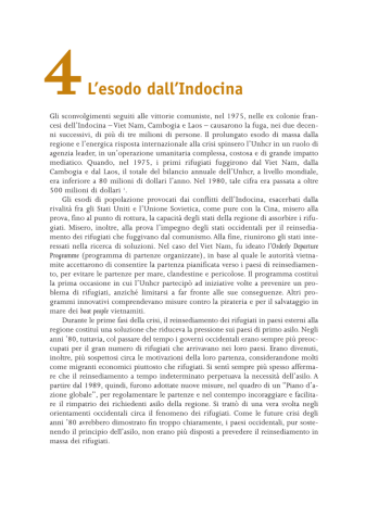 Flight from Indochina 4 L’esodo dall’Indocina Gli sconvolgimenti seguiti alle vittorie comuniste, nel 1975, nelle ex colonie francesi dell’Indocina – Viet Nam, Cambogia e Laos – causarono la fuga, nei due decenni successivi, di più di tre milioni di persone. Il prolungato esodo di massa dalla regione e l’energica risposta internazionale alla crisi spinsero l’Unhcr in un ruolo di agenzia leader, in un’operazione umanitaria complessa, costosa e di grande impatto mediatico. Quando, nel 1975, i primi rifugiati fuggirono dal Viet Nam, dalla Cambogia e dal Laos, il totale del bilancio annuale dell’Unhcr, a livello mondiale, era inferiore a 80 milioni di dollari l’anno. Nel 1980, tale cifra era passata a oltre 500 milioni di dollari 1. Gli esodi di popolazione provocati dai conflitti dell’Indocina, esacerbati dalla rivalità fra gli Stati Uniti e l’Unione Sovietica, come pure con la Cina, misero alla prova, fino al punto di rottura, la capacità degli stati della regione di assorbire i rifugiati. Misero, inoltre, alla prova l’impegno degli stati occidentali per il reinsediamento dei rifugiati che fuggivano dal comunismo. Alla fine, riunirono gli stati interessati nella ricerca di soluzioni. Nel caso del Viet Nam, fu ideato l’Orderly Departure Programme (programma di partenze organizzate), in base al quale le autorità vietnamite accettarono di consentire la partenza pianificata verso i paesi di reinsediamento, per evitare le partenze per mare, clandestine e pericolose. Il programma costituì la prima occasione in cui l’Unhcr partecipò ad iniziative volte a prevenire un problema di rifugiati, anziché limitarsi a far fronte alle sue conseguenze. Altri programmi innovativi comprendevano misure contro la pirateria e per il salvataggio in mare dei boat people vietnamiti. Durante le prime fasi della crisi, il reinsediamento dei rifugiati in paesi esterni alla regione costituì una soluzione che riduceva la pressione sui paesi di primo asilo. Negli anni ’80, tuttavia, col passare del tempo i governi occidentali erano sempre più preoccupati per il gran numero di rifugiati che arrivavano nei loro paesi. Erano divenuti, inoltre, più sospettosi circa le motivazioni della loro partenza, considerandone molti come migranti economici piuttosto che rifugiati. Si sentì sempre più spesso affermare che il reinsediamento a tempo indeterminato perpetuava la necessità dell’asilo. A partire dal 1989, quindi, furono adottate nuove misure, nel quadro di un “Piano d’azione globale”, per regolamentare le partenze e nel contempo incoraggiare e facilitare il rimpatrio dei richiedenti asilo della regione. Si trattò di una vera svolta negli orientamenti occidentali circa il fenomeno dei rifugiati. Come le future crisi degli anni ’80 avrebbero dimostrato fin troppo chiaramente, i paesi occidentali, pur sostenendo il principio dell’asilo, non erano più disposti a prevedere il reinsediamento in massa dei rifugiati. 79 I RIFUGIATI NEL MONDO L’esodo dall’Indocina, 1975–95 Cartina 4.1 REPUBBLICA POPOLARE DEMOCRATICA DI COREA Mar del Giappone REPUBBLICA DI COREA GIAPPONE REPUBBLICA POPOLARE CINESE NEPAL BHUTAN REPUBBLICA DEMOCRATICA DEMOCRATICA POPOLARE DEL LAOS LAOS BANGLADESH INDIA Mar Cinese Orientale HONG KONG VIET NAM MYANMAR MACAO MACAU MACAU OCEANO PACIFICO THAILANDIA CAMBOGIA FILIPPINE Mar Cinese meridionale BRUNEI DARUSSALAM 0 MALAYSIA OCEANO INDIANO 500 1000 Chilometri MALAYSIA SINGAPORE INDONESIA INDONESIA LEGGENDA Mar di Giava Confine di stato Movimento di rifugiati Mar degli Arafura La guerra e l’esodo dal Viet Nam I trent’anni di guerra quasi ininterrotta che tormentarono il Viet Nam, dal 1945 al 1975, furono contrassegnati da terribili sofferenze e massicci esodi di popolazione. A seguito della sconfitta francese di Dien Bien Phu, nel maggio 1954, la prima guerra indocinese si concluse con la creazione di uno stato comunista nel nord (la Repubblica democratica del Viet Nam, chiamata anche Viet Nam del nord) e uno stato separato nel sud (la Repubblica del Viet Nam, nota anche come Viet Nam del sud). Con l’insediamento nel nord di un governo comunista, oltre un milione di persone, fra il 1954 e il 1956, si trasferì a sud. Fra loro erano quasi 800mila i cattolici, i due terzi circa della popolazione cattolica totale del nord. Si ebbe anche un più ridotto trasferimento nella direzione opposta, con circa 130mila sostenitori del movimento comunista del Viet Minh che furono trasportati a nord, a bordo di navi polacche e sovietiche 2. 80 L’esodo dall’Indocina Nel 1960 ripresero i combattimenti nel Viet Nam del sud. Le forze anticomuniste, appoggiate dagli Stati Uniti, che finirono con l’inviare oltre 500mila uomini, cercavano di arrestare la penetrazione nel Sudest asiatico del comunismo, sostenuto da sovietici e cinesi. La guerra del Viet Nam provocò sempre maggiori ondate di esodi, in tutti e tre i paesi dell’Indocina. Questo fu perlopiù interno, ma in alcuni casi debordò dalle frontiere nazionali, come nel caso dei “khmer del delta”, che fuggì in Cambogia in cerca di scampo dai combattimenti nel Viet Nam 3. Alla fine degli anni ’60, nel pieno della guerra, si calcola che la metà dei 20 milioni di abitanti del sud fosse stata costretta all’esodo 4. L’accordo di pace di Parigi, del 27 gennaio 1973, pose temporaneamente fine al conflitto, aprendo la porta a un ruolo maggiore per l’Unhcr, che lanciò un programma da 12 milioni di dollari per assistere gli sfollati nel Viet Nam e nel Laos, con progetti di ricostruzione. Il programma fu rapidamente eclissato, però, dalla ripresa delle ostilità, all’inizio del 1975, e dalla caduta di Saigon nelle mani delle forze rivoluzionarie, il 30 aprile. Lo stesso anno, dei regimi comunisti si insediavano nei due paesi limitrofi, il Laos e la Cambogia. A differenza del movimento ultra-estremista dei khmer rossi, che nell’aprile 1975 prese il controllo della Cambogia, dei dirigenti più convenz