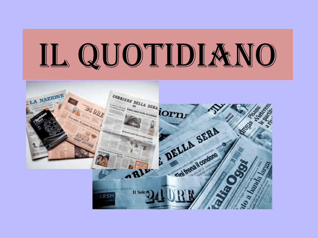 IL QUOTIDIANO La prima pagina è la facciata del quotidiano, presenta gli avvenimenti trattati più rilevanti e solitamente sono commentati; gli articoli sono disposti secondo uno schema fisso che ha lo scopo di far cogliere con un colpo d’occhio gli argomenti trattati. La testata: è la parte superiore della pagina. Comprende il nome del giornale, il nome del direttore, l’anno di fondazione, il numero, il prezzo del giornale, l’indirizzo e la data; talvolta può essere affiancato da riquadri pubblicitari (manchette). Articolo di apertura: è il primo articolo del giornale, trattante l’argomento più importante. Solitamente è situato a sinistra ed caratterizzato da un titolo di grande rilievo, spesso accompagnato da tre elementi principali: • l’occhiello, che introduce l’argomento; • Il titolo, scritto a caratteri grandi ed evidenti. Nel linguaggio giornalistico si dice che esistono due tipologie di titoli: i titoli caldi, quando essi tendono a suscitare emozioni nel lettore; i titoli freddi: quando hanno scopo puramente informativo e devono esprimere in modo sintetico il contenuto della notizia. • il sommario, che è una sintesi dell’argomento trattato nell’articolo Articolo di spalla: è generalmente collocato in alto, a destra del titolo di apertura. Tratta anch’esso un argomento importante e può essere sostituito da una fotografia o una didascalia. Civetta, o Contornato: brevi sintesi di articoli contenuti nel giornale, o la semplice presentazione del loro titolo con riferimento alle pagine in cui si trovano. Taglio: è la diversa posizione occupata sulla pagina dai vari articoli. Vi sono diversi tipi di taglio:Alto, Medio e Basso. Finestra: è un riquadro con foto riguardante una notizia importante trattata all’interno. Manchette: piccoli testi pubblicitari, posti da alcuni quotidiani ai lati della testata o negli angoli inferiori della prima pagina. Articolo di Fondo: riporta opinioni e commenti su un determinato problema ed è quasi sempre firmato dal direttore del giornale o da qualche suo collaboratore. Tasselli pubblicitari: spazi utilizzati da inserzionisti per reclamare i propri prodotti. . I GIORNALI OGGI Proprio come la televisione e la radio, il giornale oggi è uno dei più importanti mezzi di comunicazione inventati dall’uomo; in particolare, esso assolve a diverse funzioni, vale a dire: •fornire notizie, commentarle e collegarle •approfondire gli argomenti trattati •inviare messaggi pubblicitari. Per poter essere definito tale, però, deve rispettare quattro condizioni, ovvero: •essere stampato •apparire con regolarità •essere diffuso tra la popolazione •contenere notizie e commenti sui fatti del giorno. DENTRO IL QUOTIDIANO Sfogliando il quotidiano ci si può rendere conto che ogni pagina dà informazioni riguardanti un solo argomento: politica interna, politica estera, cronaca, economia, cultura, sport, spettacoli… Non ci sono regole fisse per la successione degli argomenti, ma solitamente le prime pagine dei quotidiani sono destinate alla politica interna ed estera. • INTERNO Informazioni politiche dall’Italia. Riguardano l’attività del parlamento, l’azione dei partiti e dei movimenti politici. • ESTERO Informazioni dall’estero Riguardano avvenimenti accaduti in tutto il mondo. • CRONACA Fatti di cronaca Presenta una panoramica generale dei fatti accaduti in una giornata sia nel nostro Paese che all’estero: sono gli avvenimenti che riguardano la vita quotidiana, sia positivi che negativi. ECONOMIA Informazioni economiche Riguardano le attività delle imprese e il mondo del lavoro; vengono presentate le tabelle con le quotazioni della Borsa e i cambi delle valute straniere. CULTURA Informazioni culturali Si occupano di tutto ciò che è cultura (letteratura, scienza, storia, arte…) . SPETTACOLI Informazioni sugli spettacoli Si forniscono notizie e commenti sul mondo dello spettacolo, tabelle con i programmi televisivi, articoli sui personaggi della TV. SPORT Notizie sportive Molte pagine di un quotidiano sono dedicate agli avvenimenti sportivi che si svolgono in Italia o all’estero. . LIBERTÀ DI STAMPA • Art. 21 della nostra Costituzione: Tutti hanno diritto di manifestare liberamente il proprio pensiero con la parola, lo scritto e ogni altro mezzo di diffusione. La stampa non può essere soggetta ad autorizzazioni o censure. Garanzia per un GOVERNO DEMOCRATICO affinché ci sia una libera circolazione delle idee. DI FRONTE A UN QUOTIDIANO DI INFORMAZIONE, LE PRIME DOMANDE CHE BISOGNA PORSI SONO: • Di chi è ? • Chi lo finanza? Di solito i giornali sono proprietà di grandi e potenti gruppi finanziari che spesso considerano l’informazione come un prodotto da vendere e che hanno idee ed opinioni da diffondere. TUTTI I GIORNALI IN QUALCHE MISURA MANIPOLANO LE NOTIZIE. È necessario dunque che il lettore impari a leggere il giornale in modo critico REGOLE PER UN’INFORMAZIONE IL PIÙ POSSIBILE VERITIERA (Piero Ottone) • • • • VERIFICARE SEMPRE LA NOTIZIA CITARE LA FONTE DI INFORMAZIONE SEPARARE I FATTI DAL COMMENTO USARE UN LINGUAGGIO SEMPLICE