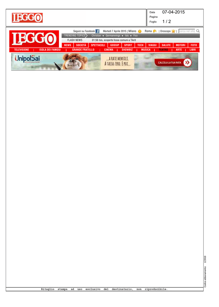 Data 07-04-2015 Pagina Foglio Seguici su Facebook TELEVISIONE ISOLA DEI FAMOSI SOCIETÀ Germanwings Isis Roma | Oroscopo | cerca nel sito Fico 01:56 Isis, scoperte fosse comuni a Tikrit SPETTACOLI GRANDE FRATELLO GOSSIP CINEMA SPORT SHOWBIZ TECH VIAGGI MUSICA SALUTE TEATRO MOTORI ARTE FOTO LIBRI 123910 FLASH NEWS NEWS Martedì 7 Aprile 2015 | Milano Christian Codice abbonamento: TRENDING TOPICS 1/2 Data 07-04-2015 Pagina Foglio SARTO PER SIGNORA, CON EMILIO SOLFRIZZI SI RIDE TANTISSIMO ALLA SALA UMBERTO Condividi 0 0 WEB TV 2/2 ROMA ROMA MILANO | COMMENTA La nuova moda dei teenager: saltare sulle auto parcheggiate, ma non la passano liscia... Martedì 7 Aprile 2015, 03:33 CONDIVIDI LA NOTIZIA Vuole fare una foto sul ponte ferroviario: bambino fulminato e investito da un treno di Giancarlo Leone Dal satellite terrestre (nelle sale con Sei mai stata sulla luna?) al palcoscenico con Sarto per signora, commedia tra le più divertenti e famose di Feydeau. Solfrizzi sarà il protagonista, il dottor Molineaux, sposato e gran farfallone. «Non potrei mai essere lui nella vita, non ho una memoria così forte da ricordare ogni sua bugia. E poi ho la faccia troppo leggibile,verrei scoperto subito» precisa subito l'attore. Per il resto? «Ho trovato il testo meraviglioso e liberatorio. I personaggi sono tutti bugiardi, si muovono in un ambiente torbido, privi di sensi di colpa. Ammiro la capacità dell'autore di aver scritto una commedia divertente malgrado tutti agiscono in maniera riprovevole». Come sta andando? «Benissimo, non dovrei dirlo io, ma il pubblico ci premia. È una bella sfida e un bel modo di godersi il lavoro». Il regista, Valerio Binasco «S'è creato un bel feeling ed un'amicizia, credo che porteremo in tournée questa piéce anche il prossimo anno». Il tuo lavoro «Sono innamorato della recitazione, ci metto tutta la passione possibile. Sono implacabile ed esigente con me stesso; è un pregio ma anche un difetto. C'è chi mi dice di rilassarmi, ma non c'è verso, quando recito come se lo dovessi fare per l'ultima volta». Toti e Tata «Gli inizi, trent'anni fa, che per un attore sono sempre i più eroici. Ad Antonio Tornaiolo, con il quale abbiamo dato vita alla coppia poi di successo in tivù, devo moltissimo. È rimasto il mio più grande amico». DOVE, COME, QUANDO Emilio Solfrizzi in Sarto per signora, da oggi al 26/04, teatro Sala Umberto, via della Mercede 50, 23-32 euro, 066794753, www.salaumberto.com Consiglia Condividi 0 DIVENTA FAN DI LEGGO Misterioso anello nero appare e si dissolve nel cielo Leggo - Il sito ufficiale Mi piace 548.882 LINK sarto per signora, emilio solfrizzi, sala umberto SPETTACOLI GENNY, LA BELLA FACHIRA TREVIGIANA INCANTA A ITALIA'S GOT TALENT GUARDA COMMENTA | TRONO DI SPADE, SALE L'ATTESA DELLA QUINTA STAGIONE. MARATONA TV SY SKY ATLANTIC PER LE PRIME QUATTRO COMMENTA | IL VIDEO PIÙ VISTO Codice abbonamento: 123910 © RIPRODUZIONE RISERVATA