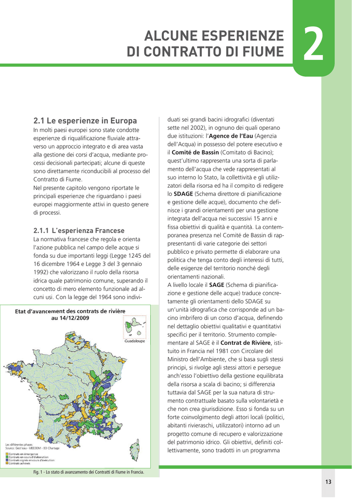 ALCUNE ESPERIENZE DI CONTRATTO DI FIUME 2.1 Le esperienze in Europa In molti paesi europei sono state condotte esperienze di riqualificazione fluviale attraverso un approccio integrato e di area vasta alla gestione dei corsi d’acqua, mediante processi decisionali partecipati; alcune di queste sono direttamente riconducibili al processo del Contratto di Fiume. Nel presente capitolo vengono riportate le principali esperienze che riguardano i paesi europei maggiormente attivi in questo genere di processi. 2.1.1 L’esperienza Francese La normativa francese che regola e orienta l’azione pubblica nel campo delle acque si fonda su due importanti leggi (Legge 1245 del 16 dicembre 1964 e Legge 3 del 3 gennaio 1992) che valorizzano il ruolo della risorsa idrica quale patrimonio comune, superando il concetto di mero elemento funzionale ad alcuni usi. Con la legge del 1964 sono indivi- 2 duati sei grandi bacini idrografici (diventati sette nel 2002), in ognuno dei quali operano due istituzioni: l’Agence de l’Eau (Agenzia dell’Acqua) in possesso del potere esecutivo e il Comité de Bassin (Comitato di Bacino); quest’ultimo rappresenta una sorta di parlamento dell’acqua che vede rappresentati al suo interno lo Stato, la collettività e gli utilizzatori della risorsa ed ha il compito di redigere lo SDAGE (Schema direttore di pianificazione e gestione delle acque), documento che definisce i grandi orientamenti per una gestione integrata dell’acqua nei successivi 15 anni e fissa obiettivi di qualità e quantità. La contemporanea presenza nel Comité de Bassin di rappresentanti di varie categorie dei settori pubblico e privato permette di elaborare una politica che tenga conto degli interessi di tutti, delle esigenze del territorio nonché degli orientamenti nazionali. A livello locale il SAGE (Schema di pianificazione e gestione delle acque) traduce concretamente gli orientamenti dello SDAGE su un’unità idrografica che corrisponde ad un bacino imbrifero di un corso d’acqua, definendo nel dettaglio obiettivi qualitativi e quantitativi specifici per il territorio. Strumento complementare al SAGE è il Contrat de Rivière, istituito in Francia nel 1981 con Circolare del Ministro dell’Ambiente, che si basa sugli stessi principi, si rivolge agli stessi attori e persegue anch’esso l’obiettivo della gestione equilibrata della risorsa a scala di bacino; si differenzia tuttavia dal SAGE per la sua natura di strumento contrattuale basato sulla volontarietà e che non crea giurisdizione. Esso si fonda su un forte coinvolgimento degli attori locali (politici, abitanti rivieraschi, utilizzatori) intorno ad un progetto comune di recupero e valorizzazione del patrimonio idrico. Gli obiettivi, definiti collettivamente, sono tradotti in un programma Fig. 1 - Lo stato di avanzamento dei Contratti di Fiume in Francia. 13 di gestione che si svolge su un arco temporale di 5 anni e che tiene conto delle potenzialità ecologiche del corso d’acqua. Il primo Contratto fu sottoscritto nel 1983 per il bacino del fiume La Thur; ad oggi, dei 221 Contratti che interessano il territorio francese, 96 sono stati completati, 56 sono stati sottoscritti e in fase di attuazione e 69 sono in corso di elaborazione; altri 10 Contratti sono in via di definizione. Il testo di legge di riferimento è la Circolare del 30 gennaio 2004 del Ministero dell’Ecologia e dello Sviluppo Sostenibile. Dal punto di vista procedurale, l’organizzazione dei lavori del Contrat de Rivière si articola in due fasi: la prima, che avviene per iniziativa degli attori locali, consiste nella redazione, attraverso la raccolta e lo studio di tutti i dati utili alla comprensione delle problematiche del corso d’acqua, del cosiddetto “Dossier préalable” (Dossier preliminare di candidatura) che contiene lo stato dei luoghi ed una prima definizione degli obiettivi e delle linee d’azione in progetto. Fino al 2003 l’approvazione provvisoria del Dossier era di competenza del Comité National d’Agrément (Comitato Nazionale di Approvazione), organismo composto da politici, rappresentanti degli utilizzatori e delle associazioni ambientaliste; oggi, per decisione del Ministero dell’Ecologia, è demandata al Comitato di Bacino, il cui ruolo è stato rafforzato allo scopo di migliorare la sinergia fra il Contrat de Rivière e il SAGE. In seguito al parere favorevole, il Prefetto coordinatore del bacino incarica il Prefetto del Dipartimento interessato di costituire un Comité de Rivière (Comitato di Fiume), presieduto da un politico eletto e la cui composizione deve essere rappresentativa del tessuto sociale ed economico del territorio. Il Comité 14 de Rivière costituisce il luogo in cui avviene il dibattito fra gli attori locali finalizzato all’elaborazione del Dossier definitivo, documento incentrato su obiettivi e programmi d’azione (lotta all’inquinamento, prevenzione dalle inondazioni, ripristino e rinaturazione delle sponde e dell’alveo, valorizzazione degli ambienti acquatici e dei paesaggi, manutenzione e gestione continuativa del corso d’acqua). In seguito all’approvazione del Contrat de Rivière e alla conseguente attribuzione di una certificazione (label) da parte del Comité de Bassin, cui le collettività locali sottopongono il proprio Dossier definitivo, può avvenire la firma del Contratto e l’accordo dei partner finanziari (Stato, Agenzia dell’Acqua, collettività locali, altri finanziatori). Il Comité de Rivière controlla l’attuazione del programma di azione quinquennale valutandone annualmente i risultati parziali. Al termine del Contratto, e successivamente ad un bilancio finale, la gestione del corso d’acqua prosegue in maniera continuativa, anche attraverso la programmazione di un eventuale nuovo Contratto. 2.1.2 L’esperienza Belga Le esperienze di gestione del territorio fluviale a scala di bacino in Belgio hanno come denominatore comune il progressivo incremento della partecipazione pub