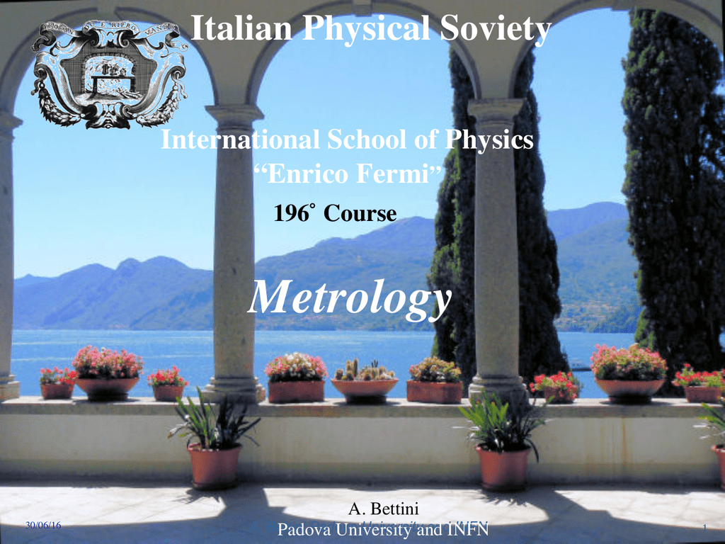 Italian Physical Soviety International School of Physics “Enrico Fermi” 196˚ Course Metrology 30/06/16 A. Bettini A. Bettini Padova Universityand andINFN INFN Padova University 1 196˚ Course Metrology From physics fundamentals to quality of life Directors Massimo Inguscio - Università di Firenze and CNR (Italy) Martin Milton - BIPM, Sèvres (France) Patrizia Tavella - INRIM, Torino (Italy) Module I: Metrology for Quality of Life (26 June to 29 June 2016) Module II: Fundamentals of Metrology (30 June to 2 July 2016) Module III: Physical Metrology and Fundamental Constants (3 July to 6 July 2016) 30/06/16 A. Bettini Padova University and INFN 2 The teachers (lectures and seminars) Roberto Battiston - ASI, Roma (Italy) Walter Bich - INRIM, Torino (Italy) Vincent Delatour - LNE, Paris (France) Michael de Podesta - NPL, Teddington (UK) Nigel Fox - NPL, Teddington (UK) Bernd Güttler - PTB, Braunschweig (Germany) Andy Henson - BIPM, Sèvres (France) Massimo Inguscio - Università di Firenze and CNR (Italy) Beat Jeckelmann - METAS, Bern-Wabern (Switzerland) Martin Milton - BIPM, Sèvres (France) Francois Nez - LKB-CNRS, Université Pierre et Marie Curie, Paris (France) William Phillips - NIST, Gaithersburg (USA) Terry J. Quinn - BIPM, Sèvres (France) Maria Luisa Rastello - INRIM, Torino (Italy) Patrizia Tavella - INRIM, Torino (Italy) Thomas Udem - Max-Planck-Institut, Garching (Germany) Robert I. Wielgosz - BIPM, Sèvres (France) Diederik Wiersma, LENS, Firenze and INRIM, Torino (Italy) Carl Williams - NIST, Gaithersburg (USA) Stephen Wise - NIST, Gaithersburg (USA) 30/06/16 A. Bettini Padova University and INFN 3 The topics • Module I: • Metrology in chemistry • Food and safety • Biomarkers • Methods and materials for clinical measurements • Climate and air quality monitoring • Redefinition of the mole • Module II: • The new International system of units • Fundamental constants • Quantum metrology • Nanotechnology for metrology • Measurement uncertainty • International metrology organization • Module III: • Electrical metrology • The future of the mass standard • Temperature standard and mise en pratique • Optical frequency standards • Metrology in space • Light metrology 30/06/16 A. Bettini Padova University and INFN 4 Villa Monastero Villa Monastero, a property of the Province of Lecco, is one of the most interesting attractions of our territory thanks to its strategic location, its history, its landscape Since 2004 its fourteen rooms can be visited following a charming itinerary. The Villa offers rooms and facilities to hold meetings, conferences, etc The Villa is surrounded by a spectacular and fascinating botanical garden which extends for two kilometres from Varenna to Fiumelatte, with several rare botanic species; it is visited yearly by about 50.000 people and offers recreation and learning opportunities thanks to the presence of many botanical species, both indigenous and exotic. 30/06/16 A. Bettini Padova University and INFN 5 Many thanks to for supporting the Varenna School for supporting the 196° course 30/06/16 A. Bettini Padova University and INFN 6 The origins of the Varenna school 1953. President Giovanni Polvani creates The International School of Physics of Varenna Polvani concluded his inaugural address of the first course, titled Issues related to elementary particle detection, with special attention to cosmic radiation”, with the words: “With the hope that this ‘dress rehearsal’ – being as it is in the hands of so outstanding scientists and followed by students with so impatient inquiring mind – might proceed worthily and fruitfully grow, I have the honour to declare open the 1953 summer course of the International School of Physics of the Italian Physical Society.” Director: Giampietro Puppi Lecturers includes: Patrick Blackett, Cecil Powell, Beppo Occhialini, Hannes Halfvén 30/06/16 A. Bettini Padova University and INFN 7 The mythical 1954 30/06/16 A. Bettini Padova University and INFN 8 1954. 2° course The contribution from existing and planned accelerators to elementary particles physics Director: Giampietro Puppi: “For the time being let us content ourselves with elementary particles and more properly let us follow them in high-energy phenomena, in that fantastic world where everything happens in tiny volumes of space incredibly small and in time intervals extraordinarily short, involving however energies which, if macroscopically scaled, would appear as frightening” Foto SIF and Uri Haber-Schaim 30/06/16 A. Bettini Padova University and INFN 9 The “fantastic world Enrico Fermi and Werner Heinsenberg gave the first two lectures of a series on the physics of pions and nucleons Gilberto Bernardini, Bernard T. Feld gave a second group of lectures on photoproduction Bruno Rossi lectured on fundamental particles and on the origin of cosmic rays Particle accelerator projects at CERN, in the UK, in France and in Italy were illustrated by world experts 30/06/16 A. Bettini Padova University and INFN 10 Varenna 1954 Cresti Rostagni 30/06/16 A. Bettini Padova University and INFN 11 Fermi Fermi gave 16 lectures in Varenna on “PIONS and NUCLEONS” from 16th of July to 6th of August 1954 Fermi passed away on 28 November 1954 On the 6th of August 1955 President Polvani in an official commemorative ceremony in Varenna and Como in the presence of Fermi’s wife, Mrs. Laura Fermi, and Fermi’s sister, Mrs Maria Sacchetti, announced that the School would be named after Enrico Fermi A bronze medallion with his low-relief effigy was unveiled in memory and in honour of Enrico Fermi at Villa Monastero 30/06/16 A. Bettini Padova University and INFN 12 The porphy plaque — 1954 - 53rd of his life — “Here with quiet spirit among so many natural beauties, I revealed for the last time, to a rank of men of science, the ultimate and most remote elements in motion inside the atoms, with which I had already made my na
