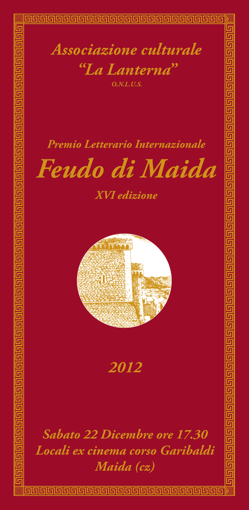 Associazione culturale “La Lanterna” O.N.L.U.S. Premio Letterario Internazionale Feudo di Maida XVI edizione 2012 Sabato 22 Dicembre ore 17.30 Locali ex cinema corso Garibaldi Maida (cz) Premio letterario internazionale “FEUDO DI MAIDA” XVI edizione 2012 Patrocinio di: Senato della Repubblica Italiana Ministero per i Beni e le Attività Culturali Ministero della Pubblica Istruzione Università LUMSA di Roma Università degli Studi “La Sapienza” Roma Regione Calabria Università degli Studi della Calabria UNICAL Università degli Studi “Mediterranea” Reggio C. Università per Stranieri “Dante Alighieri” Reggio C. Università degli Studi “Magna Graecia” di Catanzaro Amministrazione provinciale di Catanzaro Unione dei Comuni di Monte Contessa (Cortale, Curinga, Jacurso, Maida, S. Pietro a Maida) Amministrazioni comunali di: Girifalco, Lamezia Terme, Paterno Calabro. L’Associazione ringrazia quanti hanno sostenuto l'iniziativa ed in particolare, per il contributo finanziario, i Sindaci e le Amministrazioni comunali di Maida, Cortale, Girifalco, Lamezia Terme, Jacurso, S. Pietro a Maida, Curinga, Paterno Calabro, GEMSA energia fonti rinnovabili, TERNA (ditta per la manutenzione e lo sviluppo della rete elettrica nazionale), l'Avis provinciale, i dirigenti scolastici delle scuole interessate dall'incontro con l'autore e gli sponsor. Un ringraziamento particolare al prof. Salvatore Speziale curatore dei saggi. La S.V. è invitata ad intervenire alla cerimonia di premiazione Il Presidente dell'Associazione Avv. Stefania Vasta Iuffrida 2 PROGRAMMA Ore 17,30 Saluto delle autorità Prof. Natale AMANTEA Sindaco di Maida e presidente Unione Comuni M.C. Avv. Stefania VASTA IUFFRIDA Presidente dell'Associazione “La Lanterna” Dott.ssa Wanda FERRO Presidente della Giunta provinciale di Catanzaro On. Giuseppe SCOPELLITI Presidente Regione Calabria Ore 18,00 Intermezzo musicale con la Jericho Dixieland Jazz Band Ore 18,20 Relazione del senatore prof. Luigi M. LOMBARDI SATRIANI Presidente della Giuria del Premio Letterario Ore 18,30 Cerimonia di premiazione conduce Daniela FAZZOLARI Attrice Premio 2008. Pubblico e premiati: Sergio Tanzarella, Marta Petricioli, Ferdinando Imposimato, Enzo Ciconte, Cosimo Calamini, Michela Fusaschi, Danilo Gatto, Sandro Provvisionato. Hanno condotto le precedenti edizioni del premio: Gina BASSO, scrittrice, giornalista RAI - 1997, Paola PITAGORA, attrice - 1998, Roberta CANNATA, attrice - 1999, Teresa MUNARI, giornalista - 2000, Francesca NOCERINO, giornalista TG2 RAI - 2001, Lucrezia SCARDINI, giornalista Radio l RAI - 2002, 2003, Lucrezia SCARDINI e Franco DI MARE, giornalisti RAI - 2004, Gian Maurizio FODERARO, giornalista Radio l RAI - 2005, 06, 07, 08, Claudia BELLIENI, giornalista TG3 RAI - 2009, Catena FIORELLO, scrittrice - 2010 e 2011. 3 La Giuria del Premio PRESIDENTE Senatore prof. Luigi M. LOMBARDI SATRIANI Università Suor Orsola Benincasa Napoli SEGRETARIO Prof. Leopardi GRETO CIRIACO Associazione culturale “La Lanterna” Prof.ssa Laura FARANDA Cattedra di Etnologia III Università degli Studi La Sapienza Roma Prof.ssa Rossana M. CAIRA Cattedra di Letteratura italiana Università Lumsa Roma Prof.ssa Maria Grazia BIANCO Cattedra di Letteratura cristiana antica Università Lumsa Roma Avv. Stefania VASTA IUFFRIDA Presidente associazione culturale “La Lanterna” SEGNALAZIONE SPECIALE Antonio CANTISANI Vescovi a Catanzaro (1792-1851) Edizioni La Rondine, 2012 Antonio Cantisani è arcivescovo emerito di Catanzaro-Squillace (1980-2003). Precedentemente (1971-1976) è stato arcivescovo di Rossano e poi, fino al 1980, arcivescovo di Rossano Cariati. È stato per 20 anni membro del Consiglio Episcopale Permanente della CEI, prima come presidente della commissione per le Migrazioni e poi, dal 1 gennaio 1995, come presidente della Conferenza Episcopale Calabra. 4 I giovani del Feudo di Maida di Salvatore Speziale Siamo così giunti alla sedicesima edizione del Premio letterario internazionale “Feudo di Maida” e alla stampa della brochure che annualmente distribuiamo sia come invito a presenziare alla nostra manifestazione e sia come spunto per riflettere su tematiche connesse con il passato, il presente e il futuro del territorio e del mondo che lo circonda. In occasione delle quindici edizioni precedenti della brochure abbiamo invitato studiosi italiani e stranieri a scrivere degli interventi che riuscissero, nel breve spazio di una sola pagina, a presentare un aspetto significativo della Calabria e dei suoi rapporti con il Mediterraneo. Gli oltre 150 contributi offerti da più di 100 studiosi locali, nazionali e internazionali e raccolti in tutti questi anni hanno costituito un’unica pubblicazione dal titolo Incroci di sguardi. Il Mediterraneo e la Calabria dall’Età moderna all’Età contemporanea a cura del sottoscritto, con la preziosa prefazione di Luigi M. Lombardi Satriani ed un’appendice a cura di Leopardi Greto Ciriaco. L’opera collettanea è sentitamente dedicata al primo Presidente dell’associazione culturale, Vincenzo Iuffrida, scomparso quasi dieci anni fa, e ai soci dell’associazione culturale “La Lanterna”. I contributi, raggruppati in sei ambiti tematici strettamente interconnessi, enucleano i molteplici rapporti della Calabria con il Mediterraneo nel lunghissimo periodo: dal ruolo di questa regione nell’Età moderna fino al periodo napoleonico e alla Battaglia di Maida del 1806 alla Calabria nel processo di formazione dello Stato italiano durante il Risorgimento; dalla questione della religiosità e della santità in Calabria ai rapporti e ai confronti con le altre religioni e le altre culture del Mediterraneo; dalle migrazioni verso il sud del Mediterraneo del periodo precoloniale e coloniale, alle migrazioni verso il nord cui assistiamo nei giorni nostri. Un ventaglio straordinario di idee che sottoponiamo alla vostra attenzione convinti del valore intrinseco di ciascun contributo e dell’operaz