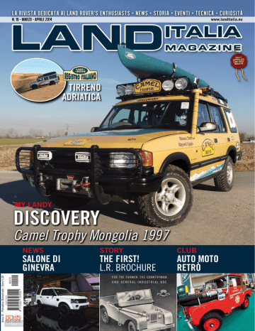 La RIVISTA DEDICATA Ai land rover’s enthusiasts • NEWS • storia • EVENTI • TECNICA • CURIOSITà N. 19 - marzo - aprile 2014 www.landitalia.eu tirreno adriatica My Landy Discovery Camel Trophy Mongolia 1997 news Anno IV - Periodico Bimestrale - Euro 5,00 Salone di ginevra story The First! L.R. Brochure club auto moto retrò sommario Marzo - Aprile 2014 16 20 News 6 Novità Da Ginevra Motorshow 2014 12A tu per tu con Ben Saunders 16 La “Nona” Di Evoque 18 Land Rover Temporary Space 20 Land Rover e Croce Rossa Le Strade Della Solidarietà 24 La spedizione “Polo Del Freddo” ha raggiunto Oymyakon in Russia 28 Jaguar XE La nuova berlina sportiva del segmento Premium 31 32 Garrison Outfitters Exclusive Deluxe Suv Hamann Mystère Roverphile Italia 34 James Taylor’s Roverphiles Italia 54 story 38 The First! [ 1A Parte ] My Landy 46Discovery 300 Tdi Camel Trophy Mongolia 1997 54 20 Anni Fra I Noccioleti 70 Land Rover tour 60Marocco CLUB 66 69 Sommario 03 Rubriche Edito 05 79 Land Rover’s Buy Guide 80 I nuovi iscritti al RSILR 84 Abbonamento 86 La Foto del mese Land Rover Series IIA del 1962 Auto Moto Retrò Buona La Prima! Old Time Show BRITISH STYLE 70 Motor Bike Expo 2014 L’ennesima Vittoria Tecnica 74 Range Rover P38 Revisione Eas (Electronic Air Suspension) www.landitalia.eu 3 Rotile Classic The tyre saver - Il salvaruota Si adatta davvero allo pneumatico. Previene l’ovalizzazione durante lo stazionamento. Preserva le gomme dall’invecchiamento. Nuova convenzione per i soci del Registro Storico Italiano Land Rover! Diametro massimo supportato: 650 mm Presentando la tessera d’iscrizione in corso di validità viene riconosciuto uno sconto del 15% sull’acquisto di Rotile Classic. Diametro minimo supportato: 500 mm Portata massima: 5,0 t Parcheggiare l’auto e individuare la posizione dei pneumatici. Cuore Italiano Dati tecnici Effettuare una leggera retromarcia e posizionare RoTile Classic nei punti individuati. Avanzare fino all’ assestamento degli pneumatici nella culla del salvaruota. www.rotile.it - Email: [email protected] - Tel.: +39 0422 267010 Nuova convenzione per i soci del Registro Storico Italiano Land Rover! Presentando la tessera d’iscrizione in corso di validità viene riconosciuto uno sconto del 20% sull’acquisto di rimorchi e ganci traino. www.umbrarimorchi.it Land Rover Defender Land Rover Discovery i Land Rover Freelander Chiedi informazioni per la tua pubblicità su LAND ITALIA MAGAZINE Tel.:+39. 331 5770456 - [email protected] Edito Marzo - Aprile 2014 passione e cultura M olti considerano l’acquisto di una vettura storica un “normale affare”. Al di fuori di tale ambito, chi si avvicina ad un veicolo storico è molto spesso a digiuno della storia e della conoscenza tecnica di queste auto e ciò, inevitabilmente, favorisce il cosiddetto “bidone”. Per ovviare a queste spiacevoli e frequenti situazioni, la soluzione migliore è quella di affidarsi all’aiuto di un collezionista esperto che ci accompagni a vedere l’auto dei sogni prima dell’acquisto, oppure, può essere molto utile informarsi leggendo libri e manuali che raccontino tutto del modello che cerchiamo. In ogni caso, dobbiamo innanzitutto tenere ben presente cosa significa “veicolo storico”. Un veicolo storico è “un veicolo spinto meccanicamente preservato e mantenuto in una condizione prevalentemente corretta, da una persona o da un’organizzazione, per il proprio interesse storico e tecnico e non come mezzo di trasporto quotidiano”. Se cerchiamo una Defender da usare tutti i giorni per accompagnare i bimbi a scuola o per andare a caccia, questo automezzo, difficilmente potrà essere considerato un veicolo storico. Non arrabbiamoci poi se non troviamo una compagnia assicuratrice disposta ad assicurarci il mezzo “ventennale” con poche centinaia di euro, se questo è l’unico mezzo che abbiamo e lo usiamo quotidianamente. Acquistando un veicolo storico, bisogna anche essere consapevoli che nel momento in cui lo andremo a rivendere dovremo rassegnarci a perdere una parte del capitale impegnato considerando l’acquisto iniziale, l’ordinaria manutenzione o il restauro. Stabilito che l’auto bella e restaurata in modo eccellente non si rivenderà mai ad un prezzo che copra tutti i costi sostenuti, salvo che la vendita non avvenga dopo tantissimi anni e che le condizioni di mercato siano favorevoli, prepariamoci a portare a casa la tanta sospirata “classic” che stiamo cercando. Per finire, un ultimo consiglio; restaurare un’auto, qualunque essa sia, è un lavoro che non può essere affidato al primo carrozziere o meccanico che troviamo sotto casa. Il restauratore o il meccanico ideale a cui poter commissionare un restauro è colui che fa questo lavoro con capacità e passione, con una specifica esperienza e competenza sul modello di auto che intendete restaurare. Un restauro fatto bene, che rispetti le specifiche caratteristiche del modello della vostra auto, alla fine costa quanto un restauro maldestro e superficiale. Insomma, vale sempre il detto “chi più spende meno spende!” Ed ora godetevi questo splendido numero dell’unico magazine italiano tutto dedicato alla nostra passione “The Land Rover”. Pierluigi Ducci Presidente del Land Rover Registro Storico Italiano www.landitalia.eu 5 News Salone di Ginevra 2014 Novità da GINEVRA MOTORSHOW 2014 di COlin Buckley Q uest’anno Land Italia Magazine ha deciso di fare una visita al Salone dell’Auto di Ginevra. «Colin, ti tocca prendere ancora il treno!», le parole del nostro direttore. Eh già! Un altro viaggio alla scoperta delle novità di casa Jaguar Land Rover. Beh, le novità sono tante e come sempre la Land Rover non smette di stupirci. 6 land italia magazine Range Rover L405 Autobiography Black Presentata al grande pubblico pochi mesi fa a Los Angeles e a Dubai, la nuovissima e lussuosissima, nonché lunghissima, Range Rover L405 Autobiography Black badged “L”, dove “L” 