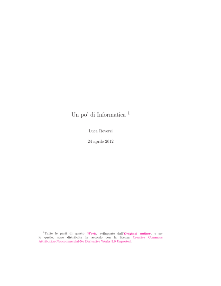 Tutte le parti di questo Work , sviluppate dall’Original author , e solo quelle, sono distribuite in accordo con la licenza Creative Commons