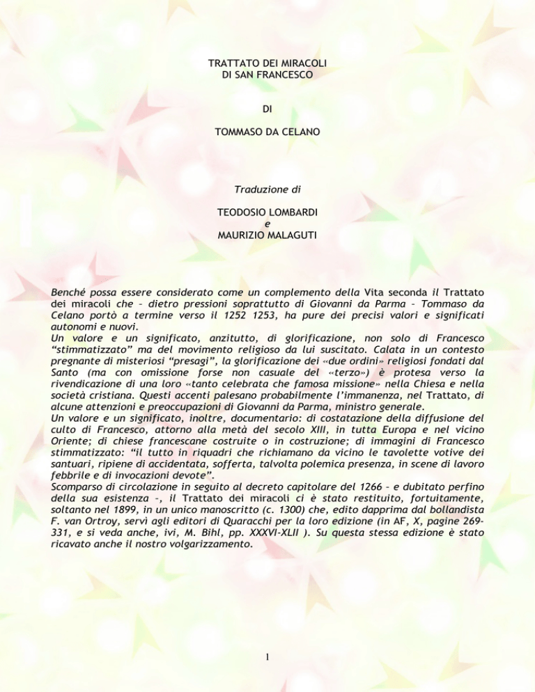 Trattato dei Miracoli di San Francesco d`Assisi (di Tommaso da