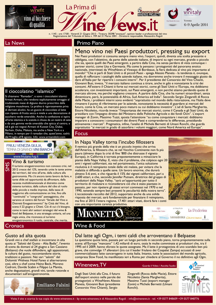 WineNews - La Prima di Winenews - n. 1145