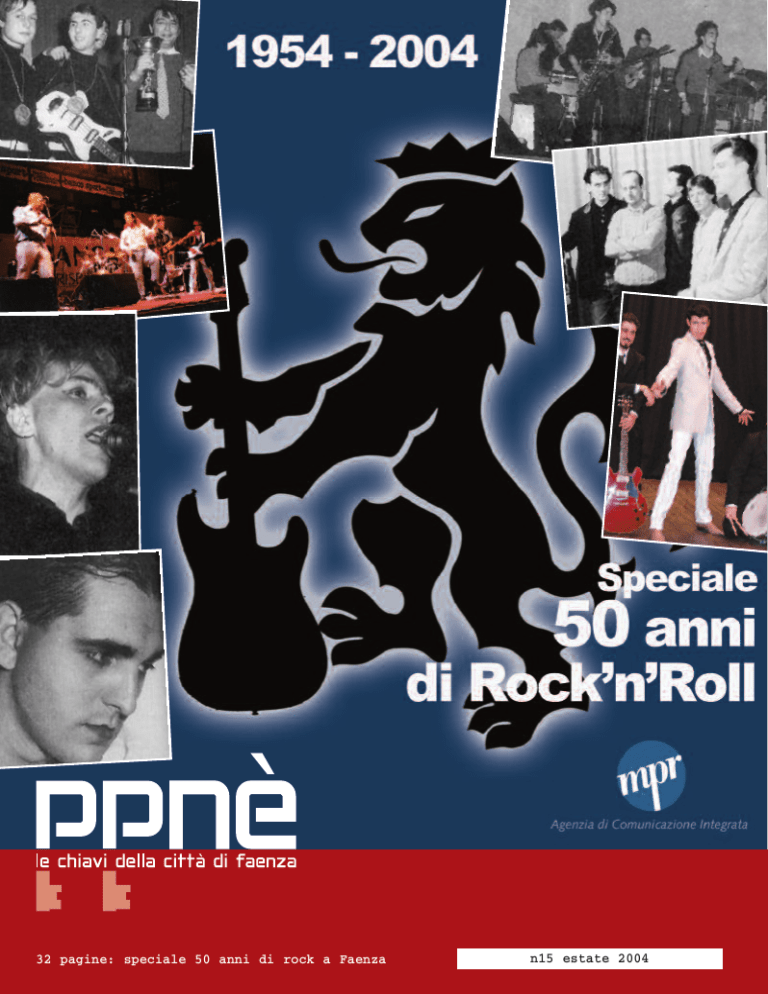 32 pagine: speciale 50 anni di rock a Faenza n15 estate 2004 la storia del rock a Faenza ppnè -2- E' con particolare piacere che saluto l'uscita di questo speciale sui cinquant'anni di rock a Faenza. Cinquant'anni rappresentano oramai due generazioni e attraverso gli articoli di questo sintetico speciale riusciamo a cogliere, attraverso i tanti nomi che vengono via via elencati, quante persone a Faenza sono state coinvolte dal fenomeno del rock. Una moltitudine. Probabilmente, un fenomeno unico nel nostro territorio, segnalato anche da molti punti di eccellenza nel settore che valorizza la musica di base: dal Pavone d'Oro, prima manifestazione canora della nostra zona, a Faenza Rock, nata nell'86 , prima in regione a far sfidare tra di loro le band giovanili, per arrivare fino al Mei, il Meeting delle Etichette Indipendenti, che ha portato Faenza alla ribalta nazionale. In mezzo vi sono poi tantissimi nomi di band e artisti faentini che sono riusciti ad emergere anche fuori le nostre mura cittadine: dai Manfredi alle Meteore, da Eddie Ponti agli Under 21, negli anni '60 e '70, per arrivare a nomi importanti come quello di Rodolfo Santandrea, premio critica nel Sanremo dell'84, e a gruppi storici come i Pharaons, in tour per l'Italia della fine degli anni '80 per arrivare fino alla Metallurgica Vigano' che con la "sua" Maria Pia Timo, in arte "la carrellista Wanda" è riuscita ad approdare fino su Rai PPnè <n°15> 1 luglio - 31 agosto 2004 direttore responsabile giordano sangiorgi la redazione: valter dal pane - giordano sangiorgi - fabrizio turrini - alberto visani - siro lusa antonietta innocenti - riccardo isola - nino drei hanno scritto: roberto rondinelli, daniele scarazzati, livia fagnocchi, pietro bandini, antonio gramentieri, fabio villa, tommaso crepaldi amministrazione - roberta barberini organizzazione e distribuzione vania leone fabrizio turrini - antonietta innocenti elaborazione grafica: cater stampa Tipografia Valgimigli - Faenza infoppnè e-mail: [email protected] Si ringraziano quanti hanno collaborato alla realizzazione di questo numero e tutti gli sponsor che ci sostengono. Due, grazie ad un'originale esperienza capace di ben miscelare musica e teatro. Ci sono poi tanti musicisti che passati dal Pavone d'Oro e da Faenza Rock sono poi approdati a pedane piu' importanti suonando con band e artisti di notorietà nazionale. Tra i tanti, possiamo segnalare Fabrizio Foschini alle tastiere con gli Stadio, ma poi c'è chi suona coi Lunapop, con i Gem Boy, con John De Leo dei Quintorigo e tante altre esperienze ancora. Oggi, molti musicisti sono padri di famiglia, stimati imprenditori e professionisti , e hanno appeso "la chitarra al chiodo",ma hanno ancora nel cuore la passione per il rock, spesso condivisa con i figli. E' a queste famiglie, e insieme a loro a tutti gli altri padri e ragazzi che suonano nella nostra città -una recente indagine ha segnalato che uno studente su quattro delle scuole medie superiori faentine suona uno strumento- che vogliamo dedicare oltre a questo speciale Ppnè (che esce grazie a un’idea di MPR - Agenzia di Comunicazione Integrata di Faenza) ancora piu' opportunità, attraverso i diversi interventi dell'Amministrazione Comunale, per far emergere su tutto il settore l'importanza e la validità della produzione musicale locale che ha , oltre ad un grande valore artistico, una grande valenza sociale, culturale , aggregativa e, a volte, per fortuna, anche impreditoriale. Il Sindaco di Faenza - Claudio Casadio fra l’america e cotignola 3 gli anni ‘60 4 gli anni ‘70 7 i primi anni ‘80 9 i secondi anni ‘80 12 tuttomusica 16 gli anni ‘90 18 musica in collina 20 radio libere 21 e bùs de blues 22 altri fenomeni musicali degli anni ‘90 le band del terzo millennio 24 tra passato e presente 25 (raccolta di articoli già apparsi su PPNE’) promenoria finale 31 con il patrocinio del Comune di Faenza Questo numero esce grazie al sostegno di MPR - Agenzia di Comunicazione Integrata - Faenza In copertina (dall’alto a sinistra, in senso orario): Eddie Ponti e gli Under 21, Le Comete, Kriminal Tango, Alessandro Ristori, Rodolfo Santandrea, Emanuele Gorini dei Black Diamond, Fratelli Gemelli con Paolo Belli. Gli articoli relativi al periodo che va dagli anni ‘60 agli anni ‘80 è una sintesi tratta da "Faenza è rock", volume uscito nel 1990 per la Coop Il Sette e scritto da Giordano Sangiorgi, Carlo Lucarelli e Angelo Farina. Ci scusiamo fin da ora per eventuali errori, lacune e dimenticanze che provvederemo a correggere in una prossima edizione. PER LA TUA PUBBLICITA’ SU PPNè: 339 7537932 - 349 4461825 - [email protected] - Inviare il materiale da pubblicare a: [email protected] Dir. Resp.: Giordano Sangiorgi - [email protected] - Suppl. al n. 74 de Il Grillo in Tasca, reg. al Tribunale di Ravenna pensieri in libertà_ Fra l’America e Cotignola Perché ho chiesto a Giordano e a Valter Il saluto dell’Assessore Claudio Ronchini di fare un Pipinè speciale sui 50 anni del rock a Faenza. Insieme al Sindaco Claudio Casadio, saluto anch'io con piacere l'uscita di questo speciale del Pipine' sui cinquant'anni di rock a Faenza, che esce grazie al lavoro volontario della Redazione del Pipine', al prezioso supporto di Mpr - Agenzia di Comunicazione Integrata di Faenza, sempre piu' legata al territorio e ai suoi eventi culturali e a tutti gli altri partner che da sempre hanno sostenuto l'avventura positiva del mensile, come l'Ascom, l'Unione Cooperative, la Cna, la Banca di Credito Cooperativo, Le Scimmie e tanti altri. Lo speciale sul rock, pur se obbligatoriamente sintetico, permette di valorizzare un'area che è assolutamente tra le priorità oramai di piu' di una generazione e che viene vissuta sia da protagonisti che da appassionati. La città è oramai attraversata puntualmente da unsa serie di appuntamenti che portano alla continua valorizzazione della musica di base realizzata dai nostri concittadini: dal Pavone d'Oro a Faenza Rock, da
