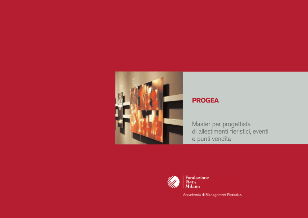 PROGEA Master per progettista di allestimenti fieristici, eventi e punti vendita PROGEA Master per progettista di allestimenti fieristici, eventi e punti vendita 5 Una nuova figura professionale: il progettista di allestimenti fieristici, eventi e punti vendita 7 Perché Progea 7 A chi è rivolto 8 Obiettivi formativi 8 Metodologia e didattica 11 Principali modelli formativi affrontati Primo - Ideare il progetto Secondo - Sviluppo dell’idea Terzo - Messa in opera 13 Corpo docente 16 Informazioni generali Frequenza Sede Direzione e coordinamento Criteri di ammissione Modalità di partecipazione Documentazione richiesta Stage Quota di partecipazione e modalità di pagamento 18 Fondazione Fiera Milano Accademia di Management Fieristico ASAL - Assoallestimenti Una nuova figura professionale: il progettista di allestimenti fieristici, eventi e punti vendita Le fiere sono strumenti di comunicazione e marketing insostituibili per le imprese, ma è necessario conoscerli a fondo se si vuole sfruttarne appieno le grandi potenzialità. Il successo della partecipazione a una fiera dipende infatti da molti fattori. Uno tra i più importanti è senza dubbio l’allestimento dello spazio espositivo. Uno spazio gradevole esteticamente, ideato secondo un concept allineato con il messaggio che l’espositore vuole diffondere, può decidere il successo della partecipazione a una manifestazione. Per questo motivo l’allestimento è sempre di più un servizio essenziale tra quelli offerti agli espositori. Non solo: col tempo l’allestire si è progressivamente avvicinato all’architettura d’interni sino a divenirne una branca. E ha assunto un ruolo sempre più rilevante nella progettazione degli spazi commerciali, professionali e abitativi. Tanto che oggi in molte occasioni si afferma che l’allestimento influenzi non poco l’architettura. D’altra parte il settore degli eventi ha vissuto una forte crescita in questi ultimi anni, generando la ricerca di figure professionali altamente specializzate in grado di conciliare funzionalità ed estetica. Il “Progettista di allestimenti fieristici, eventi e punti vendita” assume quindi un ruolo chiave nel settore, soprattutto se si tiene conto della fase di forte cambiamento che sta affrontando il sistema fieristico. Questa figura professionale deve essere in grado di gestire l’intero processo di ideazione, progettazione e realizzazione dell’area espositiva. E deve farlo tenendo conto delle esigenze di comunicare del cliente/espositore da una parte e delle possibilità concrete offerte dagli allestitori, dall’altra. Il progettista deve studiare le caratteristiche del cliente (segmento di mercato, prodotto/marchio, identità) prima di progettare uno spazio espositivo che, con immediatezza, sappia trasmettere l’immagine aziendale e colpire i target dei prodotti trattati. E allo stesso tempo sia per il visitatore un luogo coinvolgente, intessuto di esperienze visive e di suggestioni spaziali. Un mestiere complesso, quindi, fatto di intelligenza e manualità, tecnica e sensibilità, competenza e creatività, quello del Progettista di allestimenti fieristici e di eventi. E che, proprio per questo, necessita di professionisti sempre più preparati e consapevoli. 5 Perché Progea A seguito di un’approfondita ricerca sulle competenze e professioni nel sistema fieristico lombardo1 condotta dall’Accademia di Management Fieristico di Fondazione Fiera Milano, era emerso come nel settore degli allestimenti la domanda di figure professionali qualificate fosse in forte espansione, mancando tuttavia ancora uno specifico percorso formativo che ne affinasse le competenze. Consapevole del ruolo che gli allestimenti hanno nell’accompagnare lo sviluppo quantitativo e qualitativo del settore fieristico e degli eventi in genere e spinta dall’esperienza in campo formativo maturata negli anni, Accademia, in partnership con Asal, Associazione di Federlegno che rappresenta le aziende di allestimento, ha creato Progea, primo Master in Italia finalizzato a formare figure professionali preparate e competenti nella gestione del complesso processo di ideazione, progettazione e realizzazione di aree espositive, eventi e punti vendita. Progea nasce dalla necessità di riqualificare un mercato in forte espansione come l’allestimento incrementandone la professionalità. Questo garantendo una formazione specialistica e di alto livello che realmente faciliti l’ingresso di nuove risorse nel mondo dell’allestimento. Obiettivo di Progea infatti è riuscire a trasferire non solo nozioni teoriche e accademiche, bensì una reale e concreta acquisizione del saper fare attraverso docenti e testimonial specialisti del settore. A chi è rivolto Il Master si rivolge a laureati o laureandi (che abbiano sostenuto tutti gli esami al momento dell’iscrizione e lo possano provare con una dichiarazione universitaria) delle facoltà di Architettura, Disegno Industriale, Accademia delle Belle Arti o percorsi formativi affini (laurea quadriennale/quinquennale, diploma universitario triennale, laurea breve). Il candidato ideale è una persona dinamica, dotata di una buona capacità creativa, in grado di interagire e di confrontarsi quotidianamente con un settore in continuo mutamento quale quello dell’allestimento. 1 Progetto n. 155025 “I nuovi scenari del sistema fieristico lombardo: l’impatto sul sistema delle professioni e della formazione” Bando Dispositivo Multimisura - Azioni di Sistema FSE Regione Lombardia 7 Obiettivi formativi Metodologia e didattica 8 Il Master ha come obiettivo la formazione di professionisti nell’ambito della progettazione di allestimenti fieristici, eventi e punti vendita con conoscenze e abilità nella gestione di progetti strutturati e complessi. Seguendo il programma del Master i partecipanti raggiungono i seguenti obiettivi formativi: - sviluppare competenze trasversali sul piano strategico per generare idee, concept e scenari - sviluppare la ca