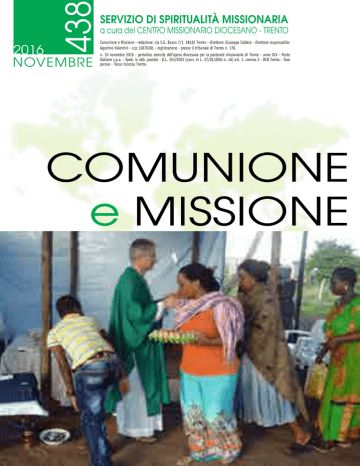 438 SERVIZIO DI SPIRITUALITÀ MISSIONARIA a cura del CENTRO MISSIONARIO DIOCESANO - TRENTO 2016 NOVEMBRE Comunione e Missione - redazione: via S.G. Bosco 7/1, 38122 Trento - direttore: Giuseppe Caldera - direttore responsabile: Agostino Valentini - ccp 13870381 - registrazione - presso il tribunale di Trento n. 178. n. 10 novembre 2016 - periodico mensile dell’opera diocesana per la pastorale missionaria di Trento - anno XLV - Poste Italiane s.p.a. - Sped. in abb. postale - D.L. 353/2003 (conv. in L. 27/02/2004 n. 46) art. 1, comma 2 - DCB Trento - Taxe percue - Tassa riscossa Trento. COMUNIONE e MISSIONE SOMMARIO 3 Lettera del direttore 5 Cammino Comune Associazioni e missionari 8 In copertina p. Oscar Girardi, in Tanzania Voci della migrazione 48 milioni di bambini in fuga 10 Libri e DVD 11 Missionari@mente 13 Lettura orante della Bibbia 15 La pagina dei ragazzi 17 360 gradi 19 ACCRI 21 Stop & Go 23 Eventi 26 Saperne di più Vittime e carnefici. Nel nome di “Dio” • Dio, ci è Padre • Cristiani responsabili “Coltan insangiunato” a Cles Integrazione e microcredito Il fascicolo è espressione del gruppo “COMUNIONE E MISSIONE” del Centro Missionario Diocesano - via s. Giovanni Bosco 7/1, 38122 Trento - tel. 0461.891270, fax 0461.891277 Il gruppo è composto da: francesca bridi - tatiana brusco - giuseppe caldera - adelmo calliari - gianni damolin - laure edine - mariano prandi - edna graciete semedo - renata juszczyk - gianluigi lutteri - ada pezzè - stefano plotegheri - manuela rossi - monica signorati - loredana valentini - leonora zefi composizione centro missionario diocesano stampa nuove arti grafiche, trento 2 CeM Novembre 2016 LETTERA DEL DIRETTORE don Beppino Caldera C arissimi, la Veglia Missionaria dell’8 ottobre in Duomo è stata ancora una volta occasione di preghiera appassionata, riflessione e ripresa di energia per tutti i missionari in partenza, i gruppi missionari presenti e le singole persone che vi hanno partecipato. Tre verbi sono stati declinati nel corso della Veglia: Vedere, Fermarsi, Toccare. Vedere Con gli occhi dei missionari e con i nostri di battezzati, vediamo l’urgenza di evangelizzare il mondo, per ricapitolare tutto in Cristo, come dice s. Paolo. Questo è urgente, perché senza Gesù Cristo manca la fede nel Padre e le religioni diventano strumenti anche di discordia e facilmente manipolabili dai poteri dominanti. Vediamo i fratelli che soffrono perché non hanno ancora assaporato la libertà della fede e la pace che viene dall’amore cristiano. Fermarsi Il fratello che ci chiede: Vieni da noi, come diceva il macedone a s. Paolo, ci manifesta la sete di Dio che solo può illuminare la vita. Blocchiamo il nostro correre dietro a tante cose, piani, esigenze personali e ascoltiamo il grido degli altri. È la vocazione missionaria che non ci chiede solo offerte, ma specialmente amicizia, comprensione, solidarietà, dono di sé in nome di Gesù Cristo. Toccare È il verbo più compromettente! È lasciarsi toccare e sentire il calore della mano dell’altro, è accettare il condividere, è il partire, è la gratuità totale. Il grido del fratello di ogni razza diventa appello alla nostra coscienza. Accogliere e accompagnare il profugo sarà segno che anche noi possiamo donare la vita, la casa, il cibo senza calcoli agli stessi africani o asiatici ai quali si sono donati i nostri missionari. Non si può essere cristiani se cacciamo via gli altri, i profughi, se non CeM Novembre 2016 3 sappiamo piangere con le loro tragedie e gioire con chi ce la fa ad arrivare sano e salvo. Nella Veglia sono state toccanti le parole di suor Josephin, pakistana, che vive ogni giorno nel pericolo della persecuzione. Ma persecuzione ne abbiamo anche qui, quando ci lasciamo inchiodare tutte le sere alla TV con spettacoli superficiali, dove ci insegnano il culto dei prodotti di bellezza, mentre tanta gente non ha cibo sufficiente, quando ci insegnano ad invidiare chi può andare sui tappeti rossi e a disprezzare chi dorme nelle stazioni o sulle pietre delle spiagge di Ventimiglia. Siamo perseguitati dagli interessi delle banche, che usano il denaro dei risparmiatori per commerciare armi e sostenere le guerre. Essere missionari sarà aprire gli occhi e il cuore per cogliere la volontà di Dio per liberare il mondo dall’ingiustizia e dalla morte. Abbiamo bisogno di formarci alla missionarietà. Per questo riprendiamo in novembre le domeniche di formazione e animazione missionaria (vedi calendario a pag. 24) in tutte le zone pastorali. Non dovrebbe neppure essere necessario l’appello a tutti i gruppi missionari a partecipare a questi incontri. Il piano pastorale missionario uscito dall’Assemblea Missionaria del 22 ottobre ci aiuti a camminare assieme nei decanati e Unità pastorali, per fare un lavoro missionario importante per la nostra Chiesa trentina. Ricordiamo che si sta avvicinando il grande giorno della beatificazione del missionario martire, padre Mario Borzaga e del suo catechista Paolo Thoj Xyooj. La Messa di Proclamazione dei due Martiri Beati è in programma per: • domenica 11 dicembre 2016 a Vientiane in Laos presieduta dal cardinale filippino Orlando Quevedo, OMI, arcivescovo di Cotabato. • nella stessa giornata l’Arcivescovo presiederà ad ore 10.30 la Santa Messa nella parrocchia di Sant’Antonio a Trento. Tutti sono invitati a partecipare. Per l’anno giubilare della misericordia al Centro Missionario è stata confezionata una mostra con le Opere di Misericordia dei missionari. La mostra è a disposizione delle parrocchie: si può prenotare. 4 CeM Novembre 2016 CAMMINO COMUNE Associazioni e missionari Nel 2013 mons. Luigi Bressan ha rivolto un invito specifico al Centro Missionario per far emergere il livello diocesano dell’azione di tante Associazioni operanti in molti paesi del mondo in collaborazione ai missionari. Dopo alcuni incontri con i responsabili degli istituti religiosi missionari, sono stati proposti degli incontri anch