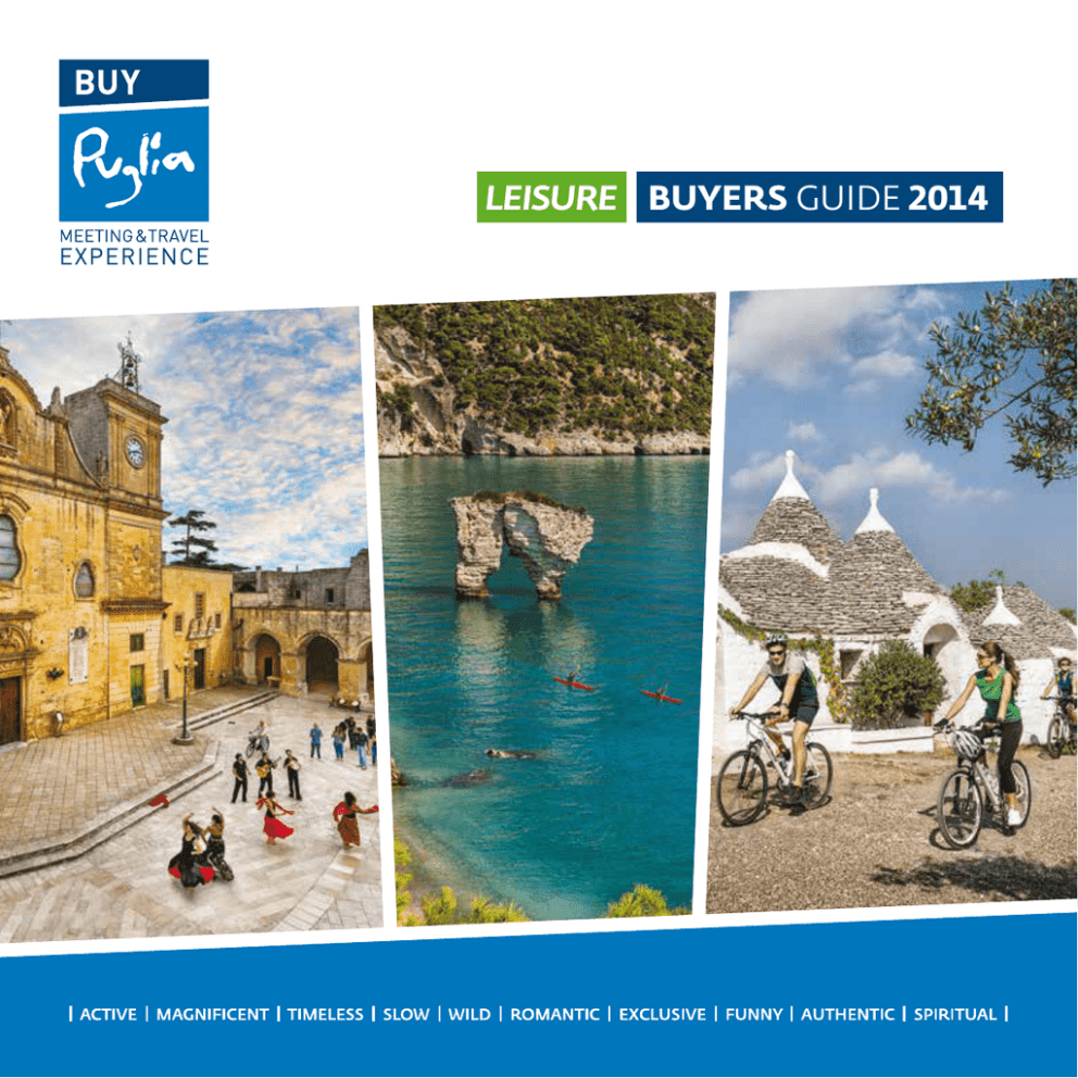 LEISURE BUYERS GUIDE 2014 HALL MAP SELLERS LEISURE FROM 1 TO 70 SELLERS MICE FROM 136 TO 191 COFFEE BREAK Lunch area Lunch area 11 12 18 19 20 21 26 27 28 29 33 34 41 42 43 50 51 52 58 59 65 66 35 4 5 6 7 8 136 137 138 139 140 141 13 14 15 16 17 142 143 144 145 146 147 148 22 23 24 25 149 150 151 152 153 154 155 156 30 31 157 158 159 160 161 162 163 164 171 172 179 180 32 36 37 38 39 40 165 166 167 168 169 170 44 45 46 47 48 49 173 174 175 176 177 178 53 54 55 56 57 181 182 183 184 60 61 62 63 64 187 188 189 190 191 PP 67 68 69 70 185 186 91 107 108 123 124 135 90 92 106 109 122 125 134 76 89 93 105 110 121 126 133 75 77 88 94 104 111 120 127 132 74 78 87 95 103 112 119 73 79 86 96 102 113 118 128 131 80 85 97 101 114 117 81 84 100 115 129 130 99 PP EXIT 10 AIRLINES 2 9 EXIT BIKE OPERATORS EXIT E AG ST 3 1 BUYERS REGISTRATION BUYERS REGISTRATION AIRLINES BIKE OPERATORS 72 ON I PT 98 E C RE CE AN TR EN REGISTRATION PRESS VISITORS EXIT REGISTRATION 71 REGISTRATION SELLERS REGISTRATION SELLERS 82 83 116 AIRLINES BUYERS AIRLINES REGISTRATION APT BASILICATA WARDROBE A E AR EXIT EXIT SELLERS LEISURE FROM 71 TO 135 NG VI LI Cala Diamante, San Domino, Isole Tremiti ph. credit Vittorio Giannella LEISURE BUYERS GUIDE 2014 Indice 4 il turismo in puglia 6 perchè puntare sui mercati esteri 11 focus 1 - top 15 paesi stranieri 43 focus 2 - il mercato domestico 47 focus 3 - altri mercati stranieri 71 identikit del buyer 81 buyers europa 148 buyers altri continenti 172 elenco dei buyers Il turismo in Puglia Highlights 2007-2013 3.188.000 arrivi e 13.360.000 presenze nel 2013 +18% gli arrivi e +16% le presenze dal 2007 +13% gli arrivi e +10% le presenze italiane dal 2007 608.000 arrivi e 2.447.000 di presenze straniere nel 2013 +45% gli arrivi e +53% le presenze straniere dal 2007 8,5% l’incidenza del PIL turistico sul PIL regionale nel 2013 Variazione % incidenza PIL +5 punti dal 2007 31.000 le imprese turistiche in Puglia nel 2013 +12% la variazione % delle imprese turistiche 5mila strutture ricettive nel 2013 +15% l’incremento delle strutture del comparto alberghiero dal 2007 +70% l’incremento delle strutture del comparto extralberghiero dal 2007 +176% Variazione passeggeri voli internazionali scali di Bari e Brindisi dal 2007 + 69% Variazione passeggeri voli totali scali di Bari e Brindisi dal 2007 4 Festa delle luci, Scorrano ph. credit Comitato Festa Santa Domenica 5 Perchè puntare sui mercati esteri Nel 2013 un turista su cinque è straniero. Più di 1 miliardo di potenziali viaggiatori. 6 S econdo l’Organizzazione Mondiale del Turismo (UNWTO) nel 2013 i viaggiatori internazionali hanno superato abbondantemente il miliardo (+5% rispetto al 2012) e un ulteriore incremento del 4% è previsto per il 2014, con l’Europa che in valori assoluti ha trainato la crescita. Al viaggio oltre confine, lievemente ridotto nei consumi e nella durata, non ha rinunciato quasi un sesto della popolazione mondiale. Il turismo rappresenta oggi la terza più grande attività socioeconomica nell’Unione Europea e si stima possa generare più del 10% del PIL dell’UE fornendo circa il 12% di tutti i posti di lavoro. Se negli ultimi anni per numerose destinazioni dell’Europa e del Mediterraneo l’incoming turistico internazionale ha registrato andamenti stazionari o ridotti, il trend di crescita del turismo straniero in Puglia è stato deciso, costante e da considerarsi ormai di lungo periodo (+45% dell’incoming dal 2007). Dopo il +17% del 2011 e il +7% del 2012, anche nel 2013 la Puglia ha registrato un segno positivo: +5% di arrivi dall’estero rispetto all’anno precedente e +7% di presenze aumentando così di un altro punto percentuale la quota di turismo straniero sul totale che ha superato il 20% nel 2014 (15% nel 2007). Ormai un turista su cinque nella regione è straniero. In cifre assolute si parla di 190mila arrivi e 850mila presenze in più in sette anni. Individuata la strategia di promozione internazionale del brand Puglia, ormai si stima che l’incidenza del turismo straniero sul totale regionale possa raggiungere il 30% entro il 2020 colmando per sempre quel gap che la distanziava dalle altre regioni d’Italia e d’Europa. L’impulso verso i mercati stranieri è stato favorito dagli investimenti in comunicazione, cultura e turismo realizzati nell’ambito del FESR (Fondo Europeo di Sviluppo Regionale) 2007-2013 e dall’attivazione di una politica di destination management che ha coinvolto gli operatori pugliesi e i maggiori players del turismo internazionale. Il grande aumento della fama della Puglia al di là confini nazionali ha trovato conferme anche nell’eco mediatica. Il 2013 è stato l’anno in cui la Puglia è entrata nella classifica dei best trips del National Geographic; la regione è tra le venti destinazioni al mondo da vedere assolutamente. Una copertina guadagnata e che trova riscontro anche nella classifica annuale di Lonely Planet, la guida turistica più venduta al mondo, dove al secondo posto fra le top ten «best value travel destinations in the world for 2014» c’è ancora la Puglia. Dal New York Times a The Guardian, da El Mundo a Le Parisien: della Puglia, della sua enogastronomia, della sua gente e della sua cultura hanno parlato e tessuto le lodi le principali testate giornalistiche del mondo. L’internazionalizzazione del turismo pugliese comincia ad assumere ormai forme sempre più consistenti determinando variazioni, nel tempo e nello spazio, la cui conoscenza può risultare rilevante per l’elaborazione di azioni di marketing efficaci che garantiscano una buona qualità dei servizi offerti. Ecco perché in questa breve guida sono state raccolte informazioni sulla distribuzione territoriale e sulle caratteristiche di consumo turistico dei 15 mercati stranieri più importanti per la Puglia nel 2013 e degli altri segmenti della domanda turistica, al fine di agevolare gli operatori pugliesi ad un approccio al mercato estero e italiano fatto di strategie 