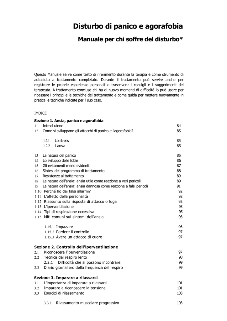 Sezione 1. Ansia, panico e agorafobia