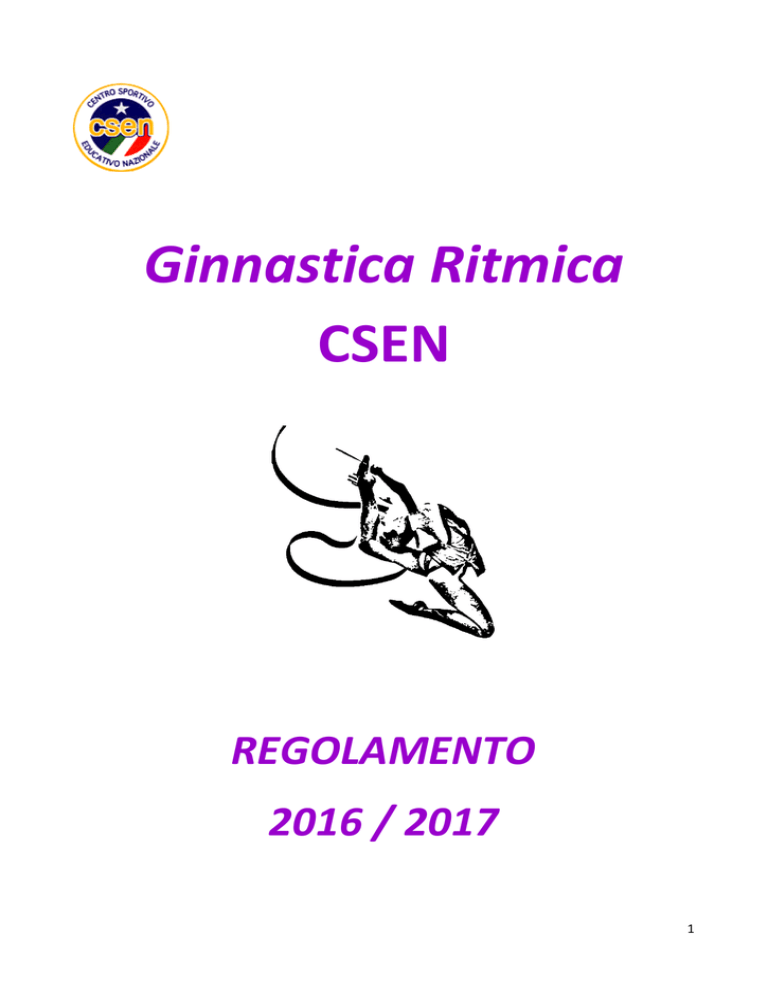 Ginnastica Ritmica CSEN REGOLAMENTO 2016 / 2017 1 CAMPIONATO DI GINNASTICA RITMICA 2016/2017 INTRODUZIONE Con questo campionato si vuole dare la possibilità a tutte le ginnaste di partecipare ad una competizione sportiva che offre un’opportunità per tutti i livelli di età e di capacità. Per questo motivo vengono presentati quattro trofei, 1° e 2° livello per le ginnaste che accedono per la prima volta o poco più al mondo della ginnastica ritmica, Silver Cup SERIE B / SERIE A (rispettivamente livello promozionale / pre-agonistico) e Golden Cup SERIE B / SERIE A (rispettivamente livello pre-agonistico / agonistico) In tutti i campionati verranno utilizzati tutti gli attrezzi della ginnastica ritmica, quindi si potrà scegliere tra esercizi a corpo libero o esercizi con palla, cerchio, fune, clavette, nastro. Gli esercizi potranno essere svolti individualmente, a coppia, oppure a squadra (min. 3 max. 5 ginnaste). Per la categoria coccinelle è possibile svolgere l’esercizio a coppia oppure a squadra (min. 3 max.4). N.B. Per I - II LIVELLO una stessa ginnasta può partecipare al max con 3 esercizi di cui: max un esercizio tipologia coppia max due esercizi tipologia squadra max due esercizi tipologia individuale Una società può portare per ogni categoria: max 6 individualiste per ogni attrezzo max 5 coppie per ogni attrezzo max 5 squadre per ogni attrezzo 2 REGOLAMENTO GENERALE PARTECIPAZIONE ALLE COMPETIZIONI DI GINNASTICA RITMICA CSEN Il settore Ginnastica Ritmica del CSEN indice Campionati a livello Regionale e Nazionale, a cui possono partecipare tutte le Società e le Associazioni sportive regolarmente affiliate per l’anno sportivo in corso. ISCRIZIONE ALLE GARE Possono partecipare alle gare solo ginnaste in regola con il tesseramento CSEN per l’anno sportivo 2016/2017. L’iscrizione alla gara deve essere effettuata entro 20 giorni dalla stessa per garantire la stesura di un ordine di passaggio il prima possibile: NON SARANNO ACCETTATE ISCRIZIONI CHE PERVERRANNO OLTRE TALE SCADENZA. Nell’iscrizione deve essere indicato: - Nome e Cognome ginnasta; - data di nascita (completa di giorno/mese/anno); - numero tessera; - categoria e attrezzo. Le iscrizioni debbono essere redatte sull’apposito modulo allegato ed inviate via e-mail all’indirizzo [email protected] PAGAMENTO ISCRIZIONE ALLA GARA E CONTROLLO TESSERE Il pagamento dell’iscrizione delle ginnaste alla gara potrà essere effettuato nella giornata di campionato prima dell’inizio della categoria di appartenenza. Qualora una ginnasta, regolarmente iscritta alla gara, non si presentasse in sede di gara sarà tenuta comunque al pagamento della quota d’iscrizione, salvo il caso di comunicazione di assenza entro 5 giorni dalla data della competizione. Assieme al pagamento verrà effettuato anche il controllo tessere. ACCESSO AL CAMPO DI GARA È consentito l’accesso al campo di gara alle sole ginnaste partecipanti e ai propri istruttori (maggiorenni), tesserati e in abbigliamento sportivo. PUNTEGGI E RICORSI Alla fine di ogni categoria gli istruttori potranno chiedere al responsabile di giuria i punteggi delle proprie ginnaste. Le decisioni e i provvedimenti adottati dalla giuria sono INAPPELLABILI per cui non si accettano ricorsi di alcun genere. È possibile però chiedere spiegazioni relative ai punteggi al responsabile di giuria. PREMIAZIONI Tutte le ginnaste saranno premiate. In particolare le prime 3 classificate con coppa (una per squadra) e dal 4° posto in poi con medaglia. In caso di pari merito nelle competizioni individuali, la coppa verrà consegnata alla ginnasta più “anziana”. 3 ANNI DI NASCITA RICHIESTI PER LA PARTECIPAZIONE ALLE RELATIVE CATEGORIE. CAMPIONATO I LIVELLO: CAT. COCCINELLE: anni 2011 e successivi 1° CAT: anni 2010-2009-2008 2° CAT: anni 2007-2006-2005 3° CAT: anni 2004 e precedenti CAMPIONATO II LIVELLO: 1° CAT: anni 2010-2009-2008 2° CAT: anni 2007-2006-2005 3° CAT: anni 2004 e precedenti SILVER CUP (serie A e serie B): ESORDIENTI : anni 2009-2008-2007 ALLIEVE: anni 2006-2005 JUNIOR: anni 2004-2003-2002 SENIOR : anni 2001 e precedenti GOLDEN CUP (serie A e serie B): ESORDIENTI : anni 2009-2008-2007 ALLIEVE: anni 2006-2005 JUNIOR: anni 2004-2003-2002 SENIOR : anni 2001 e precedenti N.B. Una ginnasta INDIVIDUALISTA non può accedere ad una categoria inferiore o superiore alla propria. Unica eccezione è per la categoria coccinelle che possono partecipare alla 1° cat. del I livello. Una ginnasta può accedere ad una categoria superiore SOLO per i programmi a squadre. 4 PARTECIPAZIONE AI VARI LIVELLI: I LIVELLO: possono partecipare le ginnaste che: - NON sono tesserate Gpt ne GR - NON partecipano ad altri entri sportivi - solo al loro 1° o 2° anno di gare regionali CSEN e non hanno mai gareggiato altrove II LIVELLO: possono partecipare le ginnaste che: - NON sono tesserate Gpt ne GR - partecipano ad altri entri sportivi - sono al loro terzo anno di gare o superiore SILVER CUP: possono partecipare le ginnaste che: - partecipano ad altri entri sportivi - sono tesserate Gpt - sono tesserate GR SERIE B: soltanto quelle che partecipano alla 4° e 3° divisione dei programmi FGI SILVER SERIE A: soltanto quelle che partecipano alla 2° e 1° divisione ed Eccellenza dei programmi FGI SILVER GOLDEN CUP: possono partecipare le ginnaste che: - partecipano ad altri entri sportivi - sono tesserate Gpt - sono tesserate GR SERIE B: le ginnaste che partecipano come individualiste al Campionato di Specialità GOLD J/S della FGI e Serie C3/C2 della FGI SERIE A: le ginnaste che partecipano come individualiste al Campionato GOLD Allieve/J/S della FGI e Serie C1 della FGI CLASSIFICA UNICA PER LE SQUADRE 5 PASSAGGIO DA I LIVELLO A II LIVELLO Le ginnaste che al campionato REGIONALE dell’anno sportivo precedente si sono classificate nel primo 20% della classifica (anche in uno solo degli attrezzi possibili) sia come INDIVUALISTA, COPPIA o SQUADRA (dove il numero di partecipanti, ind/coppie/squa