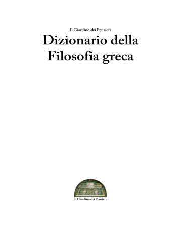Il Giardino dei Pensieri Dizionario della Filosofia greca Il Giardino dei Pensieri A cura dell’Archivio “Il Giardino dei Pensieri” www.ilgiardinodeipensieri.eu © Associazione Pi-Greco, 2012 “Dizionari dìi Filosofia” Editio minor, gennaio 2012, in versione di lavoro Dizionario di filosofia greca Termini e nozioni, figure storiche e mitologiche, eventi Accademia / Platonismo È la scuola filosofica (in greco Akademeia) fondata da Platone all’inizio del IV secolo a.C. presso un ginnasio fuori città, ad Atene, vicino a giardini dedicati all’eroe Academo (un mitico eroe attico legato alle vicende di Castore e Polluce che in questo giardino, forse una località boscosa, aveva un culto tombale). Quali fossero i caratteri della scuola è in discussione tra gli studiosi. Tre le ipotesi più importanti: che fosse una istituzione consacrata alle Muse, dal carattere quindi religioso; che fosse una vera e propria scuola di formazione politica, rivolta ai giovani migliori delle diverse parti della Grecia; che fosse una istituzione volta all'insegnamento e alla ricerca, simile ad una moderna università. In ogni caso è nell'ambiente dell'Accademia che Platone compose i suoi dialoghi ed è lì che si formò il giovane Aristotele, rimanendovi fino ai 37 anni. Nel contesto dell’Accademia platonica operarono anche personalità indipendenti, come il matematico Eudosso di Cnido (→). Al tempo di Platone, dovette esserci una diretta rivalità con un’altra scuola che mirava alla formazione politica dei giovani, quella di Isocrate, basata sullo studio della retorica piuttosto che della filosofia. Quanto ai rapporti con le altre scuole socratiche (→), sembra che l’Accademia abbia mantenuto rapporti soltanto con i Megarici (→). Dopo la morte di Platone, l'Accademia come istituzione filosofica visse per molti secoli. Si è soliti distinguere (me sono in uso anche distinzioni più analitiche): - l'Accademia antica (il IV secolo a.C.) caratterizzata dallo sviluppo degli ultimi interessi di Platone, in senso matematico-pitagorico, soprattutto con i primi scolarchi Speusippo e Senocrate: →); - l'Accademia di mezzo (dalla fine del IV al III secolo a.C.), con carattere prevalentemente scettico (le figure di maggio rilievo sono Arcesialo di Pitane e Carneade di Cirene:→); - l'Accademia nuova (dalla fine del III sec. a. C. in poi) caratterizzata dalla ripresa di motivi platonici, in un quadro vicino all'eclettismo. Nell’86 a.C. i locali dell’Accademia furono seriamente danneggiati nel contesto delle devastazioni che l’intera Atene e i suoi sobborghi subirono da parte di Silla. Da questo momento in poi il platonismo non ebbe più una propria istituzione stabile, per divenire una corrente di pensiero diffusa un po’ in tutta l’area ellenistica (ma il centro era Alessandria più che Atene). Per il periodo tra il II secolo a.C. e la fine dell’età antica gli storici della filosofia distinguono - il medioplatonismo (→), dizione entrata nell’uso all’inizio del Novecento per indicare un gruppo composito di commentatori dei dialoghi platonici attivi a partire dal II secolo a.C.; - il neoplatonismo (→), dizione storica con cui si indica la tradizione di pensiero che ha inizio (per noi, che conosciamo male le teorie dei suoi predecessori) con Plotino. In epoca ormai cristiana l’Accademia venne (idealmente) rifondata dai neoplatonici non cristiani (è la cosiddetta Scuola di Atene: →). Nel 529 d.C., quando ormai la nuova religione cristiana si era affermata del tutto, l'imperatore Giustiniano la chiuse definitivamente. Accadere Vedi Evento Accidente Il termine accidente (in greco symbebekos) ha acquisito un significato tecnico con Aristotele, che lo definisce così: “Non è né la definizione, né il carattere proprio né il genere, ma tuttavia appartiene all’oggetto, o anche, è ciò che può appartenere o non appartenere ad un solo e medesimo oggetto, qualunque esso sia” (Topici, I, 5). Il contesto in cui si colloca questa nozione è lo studio degli enti (→): Aristotele sta lavorando all’identificazione di quel che caratterizza la sostanza di un ente al fine di poterne dare una definizione reale, e trova che alcuni caratteri dell’ente studiato si trovano in una di queste posizioni: - gli appartengono per caso, non necessariamente, e quindi né sempre né per lo più, ma solo talvolta; - gli appartengono necessariamente, ma non fanno parte della sua essenza (questo significa che l’ente non cambia al variare di questi suoi caratteri). Achille Eroe omerico, è figlio di un uomo (Peleo, da cui l’aggettivo Pelide) e di una divinità marina (Teti, una delle Nereidi: →). Come altre figure del mito nate dagli amori tra mortali e immortali, Achille è mortale e in effetti muore giovane nell’ultimo anno della guerra di Troia. Omero racconta che la madre era riuscita a conferirgli l’invulnerabilità e a dotarlo di una forza che sovrastava quella di qualsiasi altro eroe, ma una parte del suo corpo (il tallone) era rimasta vulnerabile. Molti miti, accanto all’Iliade e all’Odissea (che descrive i suoi funerali e il pianto di Teti e delle altre divinità del mare), raccontano episodi della sua vita. Ed è da una lite tra lui e Agamennone, il capo della spedizione degli Achei contro Troia, che si dipana la trama dell’Iliade. Uno dei racconti del mito lo associa alla morte da giovane: potendo scegliere tra una vita lunga e priva dell’onore proprio dell’eroe e un vita breve ed eroica, sceglie senza esitare la seconda. Figura notissima nel panorama mitologico greco, è ripresa più volte dai filosofi greci nel contesto delle loro ricerche per qualche tratto utile alle loro argomentazioni. Così Zenone di Elea lo utilizza per la sua proverbiale velocità nella corsa (Omero lo chiama piè veloce) per illustrare uno dei suoi argomenti contro il movimento: vedi → Achille e la tartaruga. Achille e la tartaruga È uno dei celebri argomenti di Zenone di Elea, di cui c