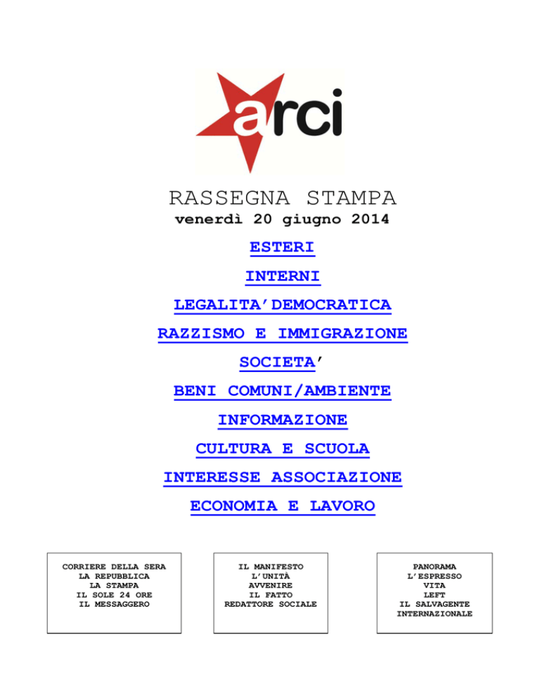 RASSEGNA STAMPA venerdì 20 giugno 2014 ESTERI INTERNI LEGALITA’DEMOCRATICA RAZZISMO E IMMIGRAZIONE SOCIETA’ BENI COMUNI/AMBIENTE INFORMAZIONE CULTURA E SCUOLA INTERESSE ASSOCIAZIONE ECONOMIA E LAVORO CORRIERE DELLA SERA LA REPUBBLICA LA STAMPA IL SOLE 24 ORE IL MESSAGGERO IL MANIFESTO L’UNITÀ AVVENIRE IL FATTO REDATTORE SOCIALE PANORAMA L’ESPRESSO VITA LEFT IL SALVAGENTE INTERNAZIONALE L’ARCI SUI MEDIA del 20/06/14, pag. 13 Tom, l’uomo di frontiera che amava gli «ultimi» PIETRO FOLENA Dieci anni fa moriva Tom Benetollo. Cambiò i connotati all’Arci Autodidatta,amante della politica, pacifista, sempre alla ricerca di nuove strade Uomini di frontiera, è difficile trovarne. In alto, è facile: protetti dai libri e da sicuri portafogli». Era un caldissimo giorno di luglio del 1978. La Padova della militarizzazione della politica rendeva difficile - dopo il ‘77, le gambizzazioni e gli attentati di autonomia operaia e le azioni violente dello squadrismo di estrema destra- pensare la politica in termini di conflitto pacifico. Tom Benetollo ci provava, e scrisse a me, giovanissimo segretario della Fgci veneta, una lunga «Dedica alla cinese» che cominciava così. Quella dedica la conservo sempre appesa dietro alla mia scrivania. Dieci anni dopo quella scomparsa tragica e improvvisa, la parola che più mi rimbalza nella mente è frontiera. Tom era uomo di frontiera, e dell’abbattimento di dogane, confini, muri ha fatto la ragione della sua esistenza, così ingiustamente breve. Sapeva bene - venendo dalla campagna, orfano di padre da giovane, con la sua adorata mamma Italia, Tom che aveva brillato negli studi diventando un intellettuale autodidatta come pochi - che chi non è «in alto», se sbaglia un bivio, paga nella vita. Bisogna muoversi «senza mai tornare, come mobili stelle polari». Ed essere rapidi - negli anni ‘70, non nell’era di un twit -, anzi «più rapidi di questo mondo che vuole coglierci e ingessarci nella sua vecchiaia». La vita pubblica di Tom Benetollo è stata segnata da tre distinte fasi. La prima, negli anni 70, quella dell' impegno politico a Padova e in Veneto, segnata dall'iniziativa per difendere lo spazio della partecipazione, negli anni delle spranghe, delle molotov e delle P.38. La seconda, quella del tentativo, nella Fgci nazionale e poi nella sezione esteri del PCI, di far prevalere un'impronta pacifista, contro i blocchi, promuovendo e organizzando il grande movimento contro i missili nucleari. E la terza, quella nell'Arci, fino a diventarne Presidente, e a cambiare i connotati della più grande associazione culturale italiana, come si vedrà dai fatti di Genova, nel 2001, fino alla sua scomparsa tre anni dopo. In ognuna di queste fasi, Tom è stato in movimento. Rapido, non ipercinetico, e profondamente insoddisfatto. Ho scritto, dopo la sua scomparsa, che Tom -nel suo essere “eretico” rispetto all'ortodossia di Partito, e nel suo essere antiestremista- è stato autenticamente berlingueriano. È difficile immaginare un uomo più lontano dalla politicaspettacolo, e dall’abitudine consolidata di larga parte della leadership politica a usare indifferentemente un argomento e il suo contrario a seconda delle convenienze. Quando di Enrico Berlinguer si propone un'immagine, nel 2014, da cui è sostanzialmente scomparsa la lotta per la pace e contro gli euromissili, e la ricerca di nuove strade per un mondo nuovo, si sbianchetta anche il senso dell'impegno di Tom. Nel suo stare sulla strada non c’era il rifiuto della politica e del potere. Sarebbe un grave torto alla sua memoria iscrivere Tom in quella categoria di acchiappa-farfalle. Tom, spirito libertario e anarchico come pochi, amava l’organizzazione, si poneva il problema della democrazia e del governo. Ha amato il partito a cui è stato iscritto sempre (prima il Pci e la Fgci, e poi il Pds e infine, non 2 senza crescente fatica, a causa della guerra nel Kosovo, i Ds): e la sua critica al partito e alla politica ha riguardato l’autoreferenzialità, l’incapacità ad aprirsi e a contaminarsi, la scarsa «cultura della strada». La strada che Tom percorreva non era la «buona strada» - o la retta via, che dir si voglia -. Non vi era traccia di populismo, di buonismo né di pelosa compassione. Tom- per molti versi missionario laico e civile, come lo sono Ciotti, Zanotelli, Strada - percorreva «la cattiva strada», quella di cui aveva cantato magistralmente Fabrizio De André. E se è l’amore, nella poetica del cantautore genovese, a rimettere in circolo la vita, questo amore, in una visione politica, è amore per gli altri. La politica come amore. Amore per i neri americani sfruttati. Amore per il tormentato uomo dell’est, negli anni dopo il crollo del Muro, che Tom, insieme alla nostra Fgci, aveva auspicato. Amore per tutte le vittime dei soprusi. Tom portò l’Arci nelle lotte contro la cancellazione dell’articolo 18, e persino nel referendum promosso dalla Fiom. La strada era la strada del mondo. Tom è stato globale e universale, ben prima che si parlasse di globalizzazione. Quando, nel 1987, lascia il lavoro di funzionario e dirigente della sezione Esteri del PCI, e va all’Arci, Tom costruisce prima del tempo una nuova identità plurale. E quando, dopo, le “strade” della sinistra si sono divise, talvolta in modo irreparabile, la sua Arci diventa già un luogo comune, una strada in cui viandanti - «lampadieri», come scrisse a un suo compagno-, pellegrini, ciclisti, marciatori della pace e lavoratori dei call center, tribù avversarie della sinistra camminano, talvolta senza volerlo o neppure saperlo, insieme. Mi domando, senza risposta, che cosa direbbe oggi, di questa politica, Tom. Sembra passata un’eternità, e sembra siano rimasti sotto le macerie dei vecchi castelli del '900 i valori da cui tutti siamo nati: eguaglianza, fraternità, libertà. La stessa Arci, dopo Tom, non è stata più lontanamente la stessa - e forse non poteva esserlo -. Sono st