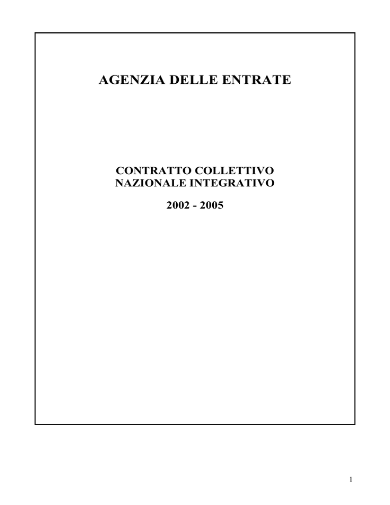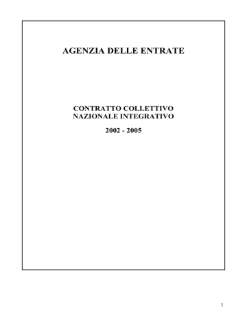 AGENZIA DELLE ENTRATE CONTRATTO COLLETTIVO NAZIONALE INTEGRATIVO 2002 - 2005 1 INDICE CAPO I – Disposizioni generali Art. 1. Campo di applicazione – pag. 2 Art. 2. Durata e decorrenza – pag. 3 CAPO II – Relazioni sindacali Art. 3. Sistema delle relazioni sindacali – pag. 4 Art. 4. Contrattazione integrativa – pag. 5 Art. 5. Informazione – pag. 6 Art. 6. Concertazione – pag. 7 Art. 7. Consultazione – pag. 8 Art. 8. Forme di partecipazione – pag. 9 Art. 9. Interpretazione autentica dei contratti – pag. 10 Art. 10. Composizione dei conflitti – pag. 11 Art. 11. Diritti sindacali – pag. 12 CAPO III – Fondo per le politiche di sviluppo Art. 12. Contrattazione locale e fondo di sede – pag. 13 Art. 13. Premio di produttività – pag. 14 CAPO IV – Sistema classificatorio, formazione e sviluppo professionale Art. 14. Profili professionali e ruoli – pag. 15 Art. 15. Formazione – pag. 16 Art. 16. Sviluppi economici all’interno delle aree – pag. 17 Art. 17. Posizioni organizzative e professionali – pag. 18 Art. 18. Indennità di responsabilità – pag. 19 Art. 19. Conferimento e revoca degli incarichi – pag. 20 CAPO V – Norme finali Art. 20. Inquadramento iniziale – pag. 22 Art. 21. Disposizioni di prima attuazione – pag. 23 ¾ ¾ ¾ ¾ ¾ Allegato A – Profili professionali Allegato B – Posizioni organizzative Allegato C – Quadro di equiparazione dei profili professionali Allegato D – Ruoli dei processi di missione Allegato E – Tabella passaggi di posizione economica ¾ Allegato F – Ripartizione centrale e regionale dei passaggi di cui all’art.21 2 CAPO I – DISPOSIZIONI GENERALI Articolo 1. Campo di applicazione 1. Il presente contratto collettivo nazionale integrativo, di seguito indicato come CCNI, si applica a tutto il personale con rapporto di lavoro a tempo indeterminato o a tempo determinato, esclusi i dirigenti, dipendente dall’Agenzia delle Entrate, di seguito denominata “Agenzia”. 2. Il CCNI regola le materie demandate al livello di contrattazione integrativa dal contratto collettivo nazionale di lavoro del comparto Agenzie fiscali 20022005, di seguito indicato come CCNL, le cui disposizioni si intendono, comunque, integralmente richiamate. 3. Nella provincia autonoma di Bolzano il CCNI può essere integrato ai sensi del D.P.R. 26 luglio 1976, n. 752, come modificato dal decreto legislativo 13 maggio 2001, n. 272. 3 Articolo 2. Durata e decorrenza 1. Il CCNI concerne il periodo 1 gennaio 2002 – 31 dicembre 2005 per la parte normativa e il periodo 1 gennaio 2005 – 31 dicembre 2005 per la parte economica. 2. Gli effetti giuridici decorrono dal giorno successivo alla data di stipulazione. 3. Alla scadenza, il CCNI si rinnova tacitamente di anno in anno qualora non ne sia data disdetta da una delle parti con formale comunicazione scritta, almeno tre mesi prima di ogni singola scadenza. In caso di disdetta, le disposizioni contrattuali conservano la loro efficacia fino alla stipulazione del successivo CCNI. 4. Le piattaforme sindacali per il rinnovo sono presentate almeno tre mesi prima della scadenza del CCNI al fine di evitare vacanze contrattuali. Entro trenta giorni dalla presentazione delle piattaforme le parti si incontrano per l’avvio delle trattative, da tenere in una sessione negoziale unitaria. 5. Le parti verificano lo stato di attuazione del CCNI in appositi incontri a cadenza quadrimestrale. 6. Alla scadenza, le disposizioni del CCNI conservano la propria efficacia fino a quando non siano state sostituite dal successivo contratto collettivo. 7. Dalla data di sottoscrizione del CCNI è disapplicato, per il personale dell’Agenzia, il contratto collettivo nazionale integrativo per il personale dipendente dall’ex Ministero delle Finanze, sottoscritto il 16 febbraio 2000. 4 CAPO II – RELAZIONI SINDACALI Articolo 3. Sistema delle relazioni sindacali 1. Il sistema delle relazioni sindacali nell’Agenzia è incentrato sul metodo del confronto e della partecipazione, al fine di elevare l’efficacia e l’efficienza dei servizi, la crescita professionale dei dipendenti e il miglioramento delle condizioni di lavoro, nel pieno rispetto della distinzione dei ruoli e delle responsabilità. L’Agenzia s’impegna a svolgere un’adeguata opera di informazione, volta a sensibilizzare la dirigenza e a valorizzarne il ruolo di responsabilità riguardo alla piena applicazione delle norme del CCNI. 2. Il sistema di relazioni sindacali dell’Agenzia si articola nei seguenti modelli relazionali: a) contrattazione integrativa, che si svolge sulle materie e con le modalità indicate dal CCNL e dal presente contratto; b) partecipazione, che si articola, a sua volta, negli istituti dell’informazione, concertazione e consultazione. 3. Gli uffici centrali, unitariamente considerati, le Direzioni regionali e quelle provinciali, nonché gli uffici periferici individuati come sede di contrattazione, possono attivare, anche per esigenze riguardanti particolari aspetti relativi a specifiche realtà territoriali, ulteriori momenti di confronto con le organizzazioni sindacali, in aggiunta a quanto espressamente previsto dal presente contratto. 5 Articolo 4. Contrattazione integrativa 1. A livello nazionale la contrattazione integrativa si svolge tra le parti individuate dall’art. 11, comma 1, parte I) del CCNL e sulle materie individuate dall’art. 4, comma 3, lettera A), dello stesso CCNL, oltre che sulle materie regolate dal CCNI. 2. A livello regionale, intendendo nel CCNI per livello regionale, salvo diversa specificazione, anche quello delle province autonome di Trento e Bolzano, la contrattazione integrativa si svolge tra i seguenti soggetti: a) per l’Agenzia, il direttore regionale o provinciale o un suo delegato; b) per le organizzazioni sindacali, le organizzazioni sindacali di categoria territoriali firmatarie del CCNL. 3. A livello regionale la contrattazione integrativa ha per oggetto la ripartizione nel relati