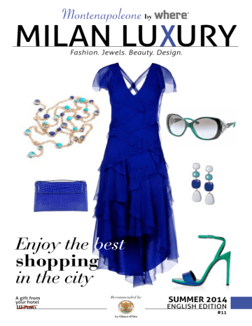 Montenapoleone by milan LU URY Fashion. Jewels. Beauty. Design. Enjoy the best shopping in the city A gift from your hotel 10 euro Recommended by C lefs d’Or C lef s d’Or Clefs d’Or “Le Chiavi d’Oro” SUMMER 2014 English Edition #11 Introduction by Umayya Theba It’s the summer to score more! If you’ve chosen to spend a few months baking in the humid heat of the fashion capital rather than fly south to catch the peak of football fever, you’ve made an educated decision which will most certainly see you enjoying the best of both worlds. Read our suggestions on sports gear which are every bit as fashionable as they are recognised before gathering in Piazza Duomo to join the cheering crowd. And just in case your team is failing miserably, hide your emotions – and tears - with our range of handpicked designer sunglasses. Since you will be outnumbered by passionate patriotic fans, consider showing your support for Italy’s national team instead, but if soccer doesn’t hold your interest, perhaps an Emporio Armani sweater designed for an Italian basketball team will. Whatever sport you follow, putting all your faith in a team may lead to serious disappointment, but this Expo 2015 host city will lift you from despair ADV VACHERON with countless other reasons to score big. Invest in your personal style from morning to evening with our outlined looks which mix and match branded items ideal for a day-time date with Zaini’s chocolate delights, an afternoon aperitivo at la Rinascente, an evening rendez-vous at the Arena di Verona and other truly unique locations where quality, style and tradition have stood the test of time. IN THIS ISSUE | CONTRIBUTORS UMAYYA THEBA ALISA AUNS ELENA BINDA STEFANIA VIDA BIO: South African by birth but BIO: A fashion journalist, BIO: Elena is an Italian BIO: A Milanese journalist Italian in heart and spirit, Umayya blogger (blog.smartmilan.it) and journalist who came to Milan as a with a passion for her job, for is a journalist and blogger who a consultant for Latitude45.it, student – planning to stay for only years Stefania has covered the gave up a corporate job to expe- Alisa introduces us to an exclusive a short time, life intervened and latest fashion and style trends in rience Italy - not just as a tourist, shopping experience in Milan she has lived here for many years, the city. After contributing to a but like a local. She documents by offering us a slew of insider first as a student, then as a career number of high-end publications her travels and pours her passion secrets and new trends but also girl and now also as a married in the sector, she now works as for Italian fashion and Milanese useful information to navigate the woman. Though seeing Milan as a the Lifestyle and Fashion Editor of lifestyle into her blog, U in Milan, countless opportunities offered multi-faceted city she still retains Where Milan. while contributing to the Where by the city. the eye of a tourist experiencing it Milan magazine and The Luxury for the first time. Shopping Guide. SUMMER_1 Contents News New Openings Towards Expo The best of Discovering Milan Italian High Fashion Top Brands Jewels and Watches Top Brands Tips Authentic experiences in the Quadrilatero Montenapoleone Card, shopping without stopping Getting around Milan Insider’s View SUNGLASSES | Play “pick-a-boo” in style! by Umayya Theba 14 EXCLUSIVE | Unique in Milan by Stefania Vida 18 SPORTSWEAR | We are the champions! by Elena Binda 22 Focus on BALLIN | Handcrafted for your feet Shop in Style DAY-TIME Diarise a day-time date Montenapoleone by APERITIVO 4 The Aperitivo collection 6 EVENING Evening starlet, shine! 8 Highlights 30 Jaeger-LeCoultre Manzoni 24 34 Damiani Rocca 1794 Giòsa Milano Miki House Pisa Orologeria – Rolex Boutique 13 Pisa Orologeria and Patek Philippe Boutique 26 Ballin Pettinaroli 56 Around Milan Outlets and factory stores The Guide Via Montenapoleone & Around the corner boutiques directory 40 Your Premier Refund+ 退税 English Edition 44 44 45 45 46 46 47 47 48 48 事後免税 C lef s d’Or Chiavi d’Oro” REPORTERS Alisa Auns, Elena Binda, Umayya Theba, Stefania Vida DESIGNER Elisabetta Giudici 事後免税 50 Although the publisher has made every effort to include copyright credits, in the event of there being any errors, oversights or omissions, we would like to apologize to the copyright holders in question whose names will be published in the next issue. MARKETING & ADVERTISING Isa Faleschini, Marta Mailhac, Rachele Renna ADMINISTRATION Katia Greto PRODUCTION & CIRCULATION, SALES SUPPORT COORDINATOR Paola Grilli HOTEL pr SERVICES Maria Granata ([email protected]) © 事後免税 退税 C lefs d’Or editorial (PROEDI COMUNICAZIONE srl) MANAGING DIRECTOR proedi comunicazione Daniele Misrachi WEB EDITOR Anna Aiello 退税 退税 RECOMMENDED BY CONTRIBUTORS & consultants Carey Bernitz, Adriano Caramenti (photographer), Floriana di Maio, Joy Lacanlale, Fabio Lancini, Tips Images (Iconography) Возврат нало га Возврат нало га published by: Where Italia srl Via Ezio Biondi, 1 - 20154 Milano. T: 02 349951 - Fax 02 33107015 [email protected] www.wheremilan.com EDITORial coordination Alessandra Finzi 49 Your Premier Refund+ Your Premier Refund+ MONTENAPOLEONE BY WHERE MILAN LUXURY http://montenapoleone.wheremilan.com publisher and editor-in-chief Andrea Jarach ([email protected]) Clefs d’Or 事後免税 by PREMIER THE WHERE PROJECT IS ENDORSED BY “Le Your Premier Refund+ 事後免税 Возврат нало га #11 SUMMER 2014 Вы Премьер Воз Возврат нало га 退税 Your Premier Refund+ Fashion. Jewels. Beauty. Design. 42 Check the logos on the following pages 28 for merchants accepting : 38 milan LU URY Your Premier Refund+ Your Premier Refund+ 1234 1234 1234 1234 Texte xxxxxxxxxxxxxxxxxxxxxxxxxxxxxxxxxxxxxxxxxxxxxxxxxxxx xxxxxxxxxxxxxxxxxxxxxxxxxxxxxxxxxxxxxxx CUSTOMER SERVICES Cristina Garbini, Maria Grazia Rub