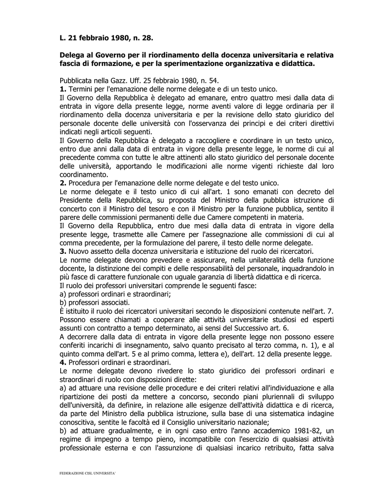 L. 21-2-80 N 28 - Cisl Università